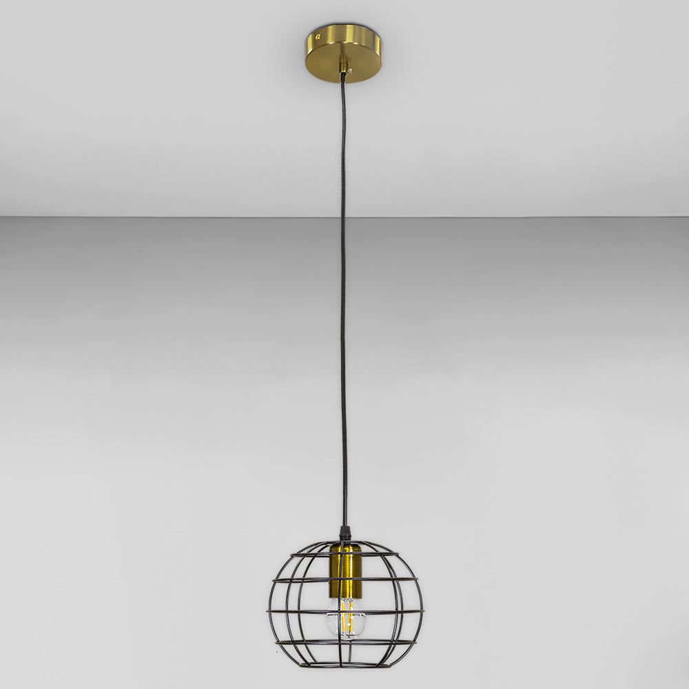 Сучасна підвісна люстра в стилі Лофт на одну лампу з плафоном у вигляді овальної металевої клітки.
