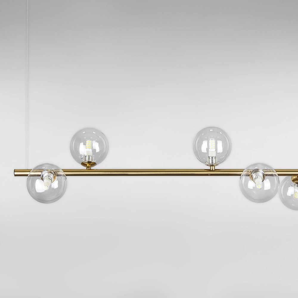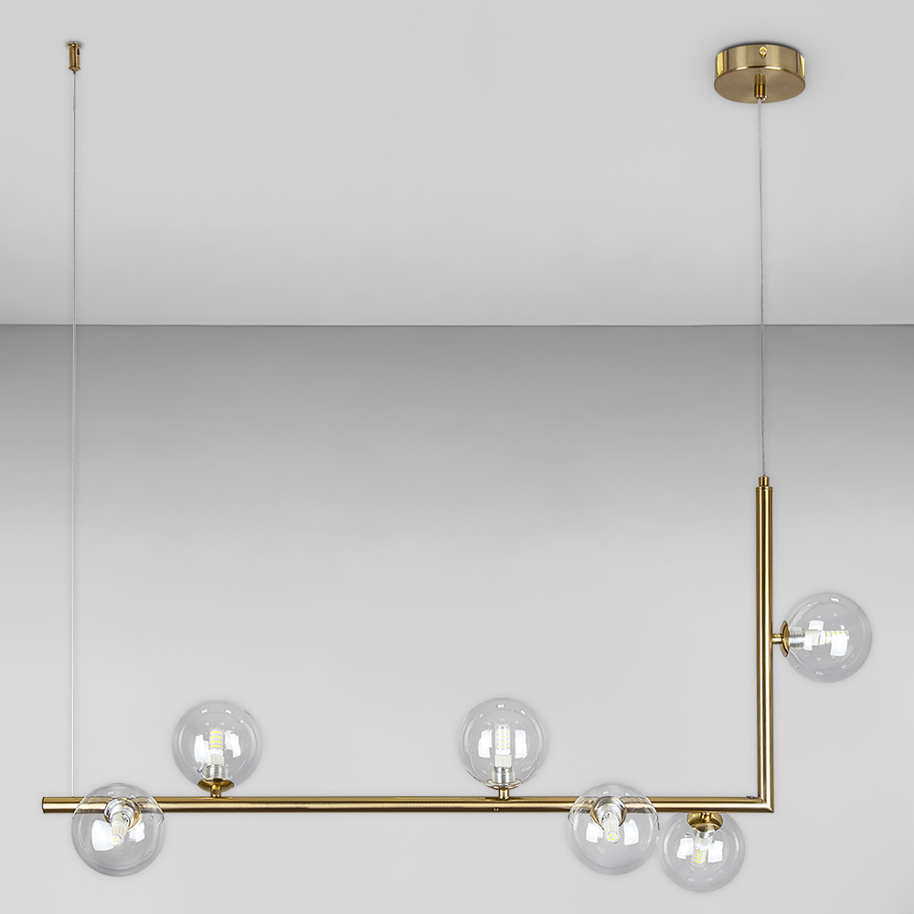 Сучасна підвісна люстра в стилі Лофт на шість ламп зі скляними плафонами у вигляді куль.