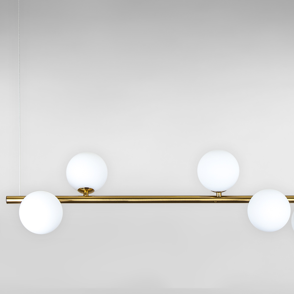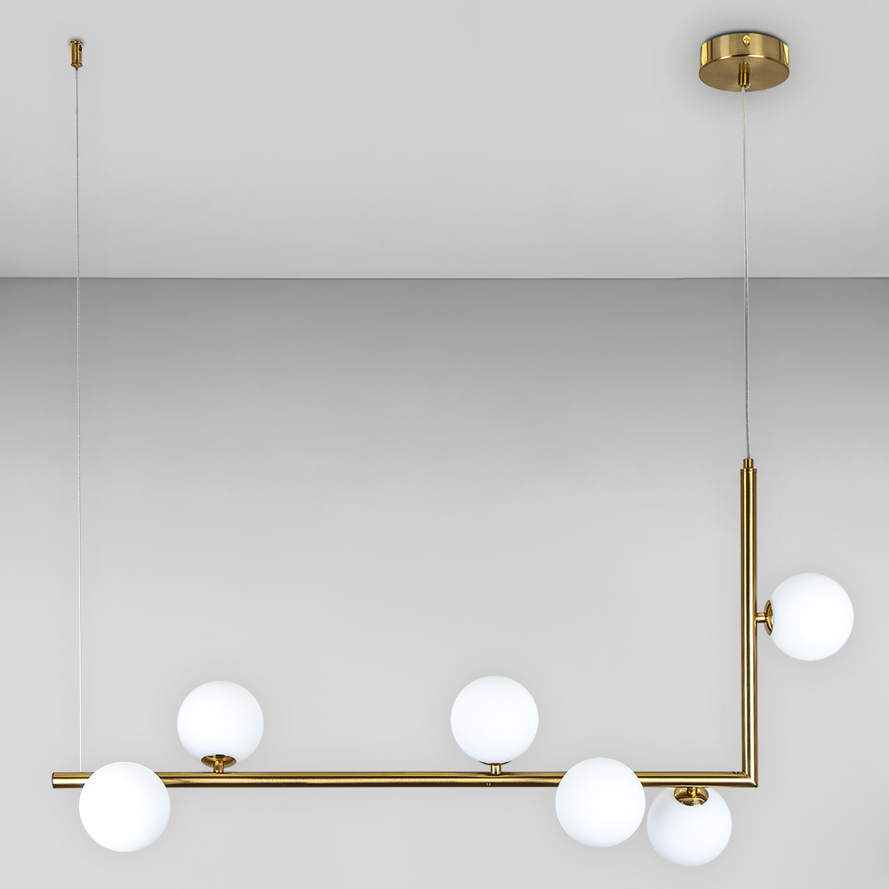 Сучасна підвісна люстра в стилі Лофт на шість ламп зі скляними плафонами у вигляді куль.