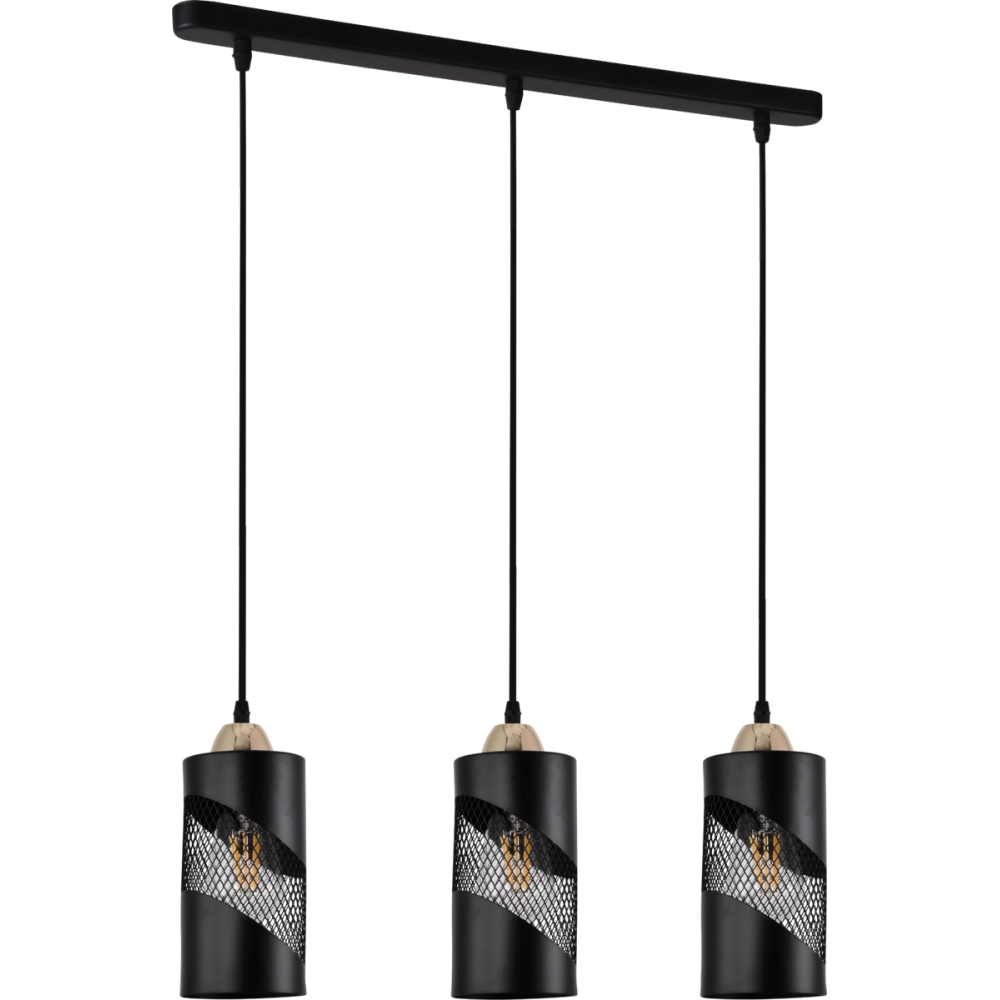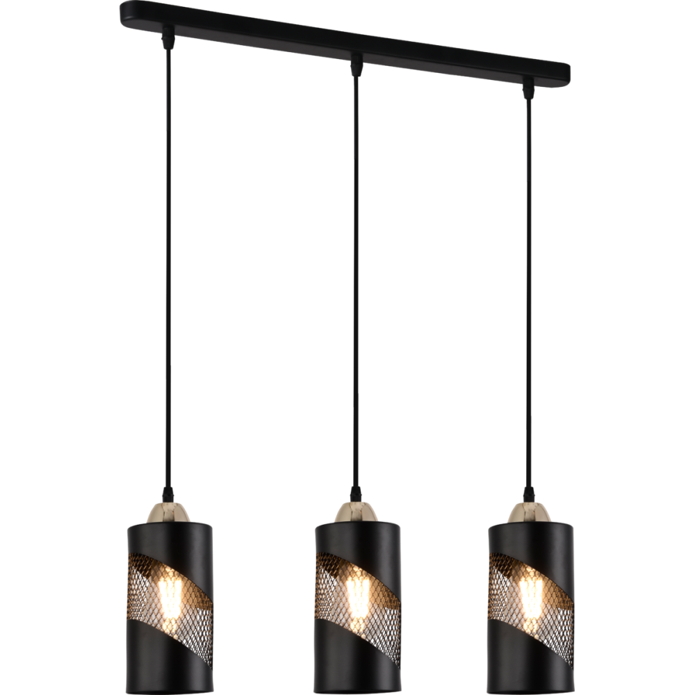 Три плафони із металу сіточкою чорного кольору циліндричної форми створює неповторний ефект, який підкреслить стиль лофта вашого інтер'єру. З цоколем Е-27, що підтримує лампочки до 60 Ватт, ви зможете створити освітлення, що відповідає вашим потребам та атмосфері приміщення.