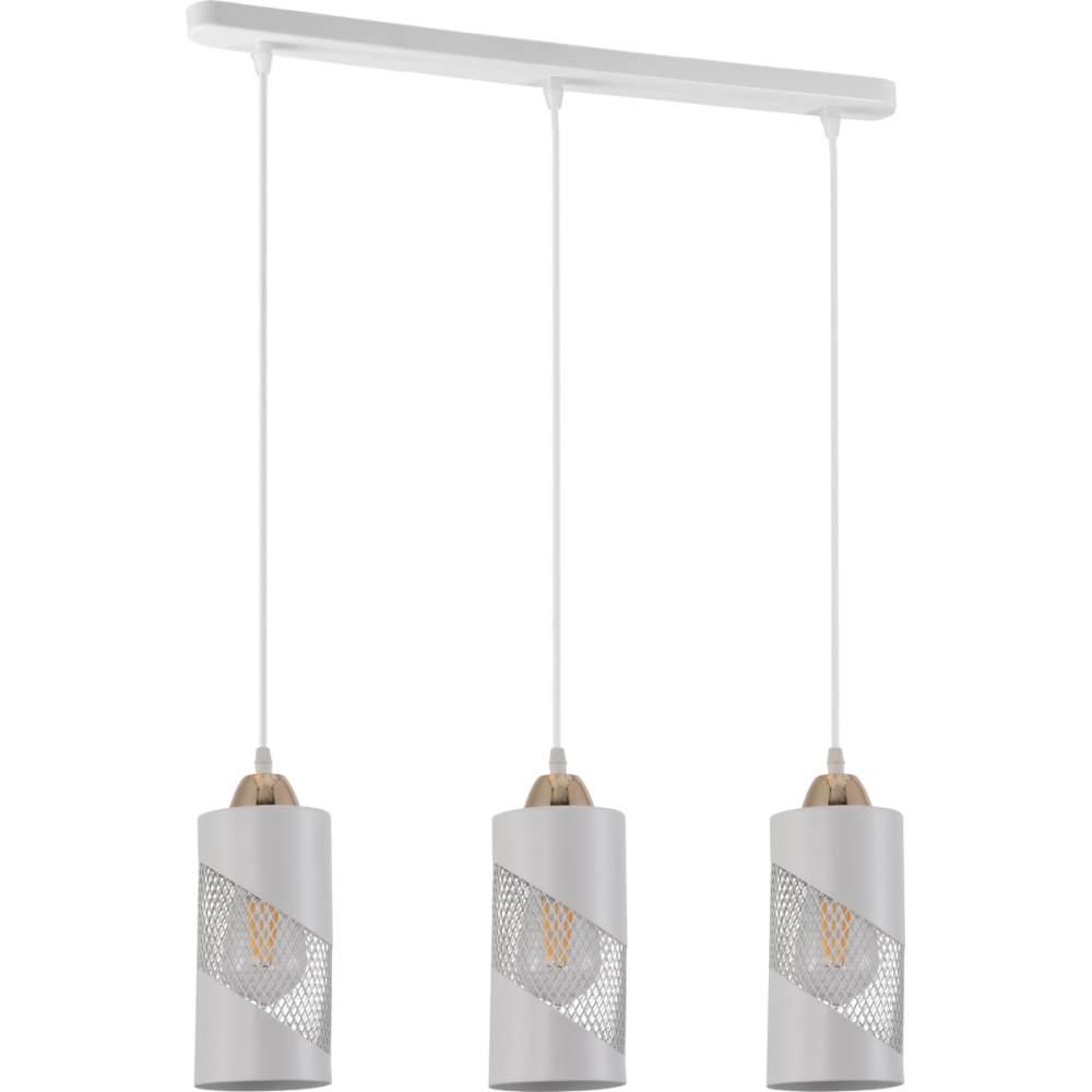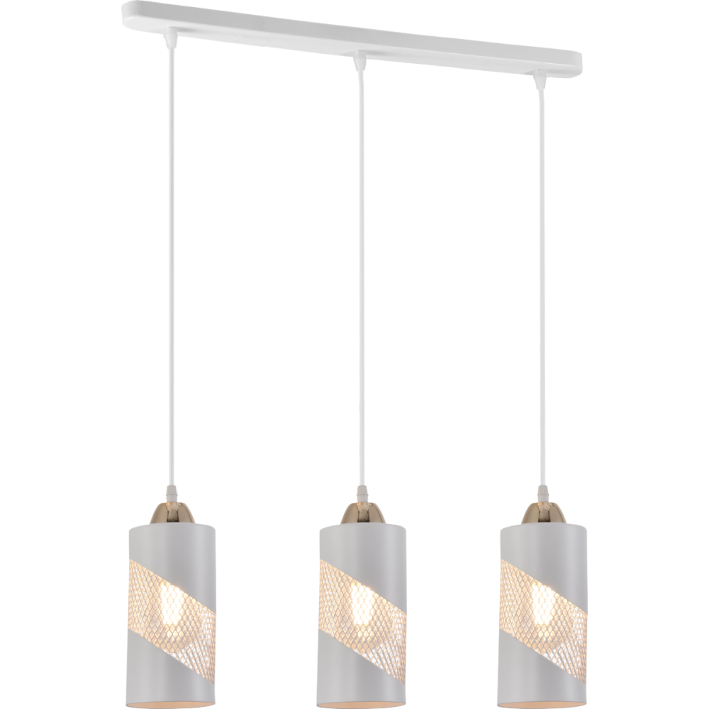 Три плафони із металу сіточкою білого кольору циліндричної форми створює неповторний ефект, який підкреслить стиль лофта вашого інтер'єру. З цоколем Е-27, що підтримує лампочки до 60 Ватт, ви зможете створити освітлення, що відповідає вашим потребам та атмосфері приміщення.
