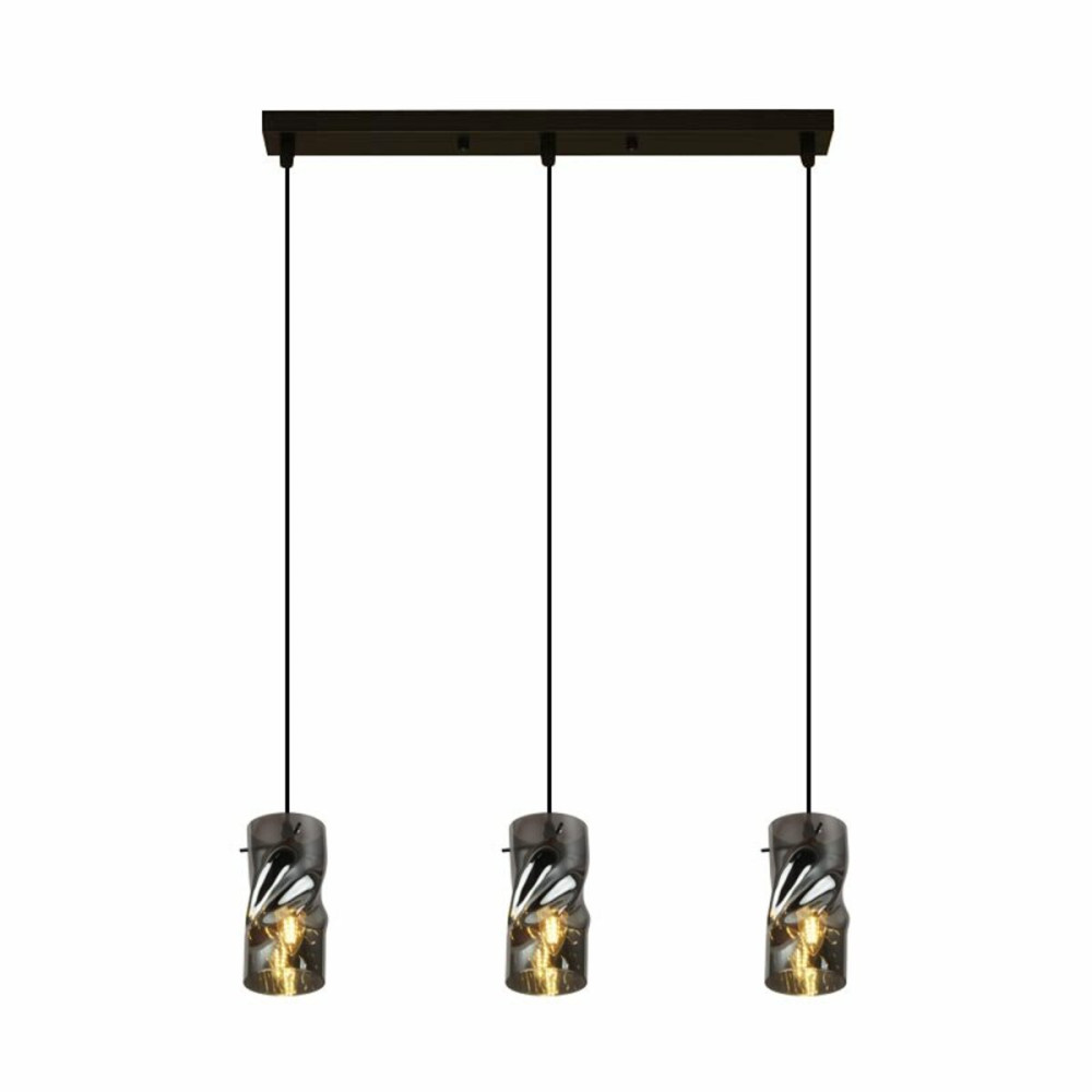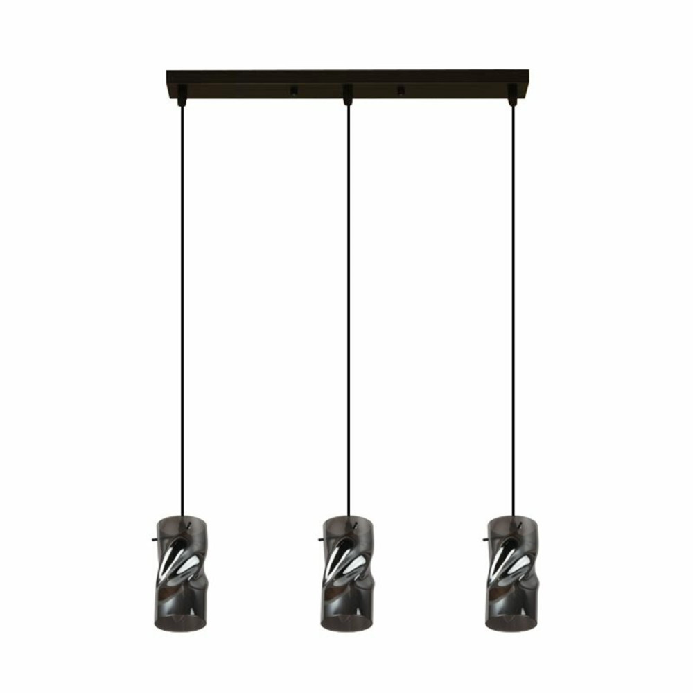Сучасна підвісна люстра в стилі лофт на три лампи з декоративними скляними плафонами циліндричної форми.