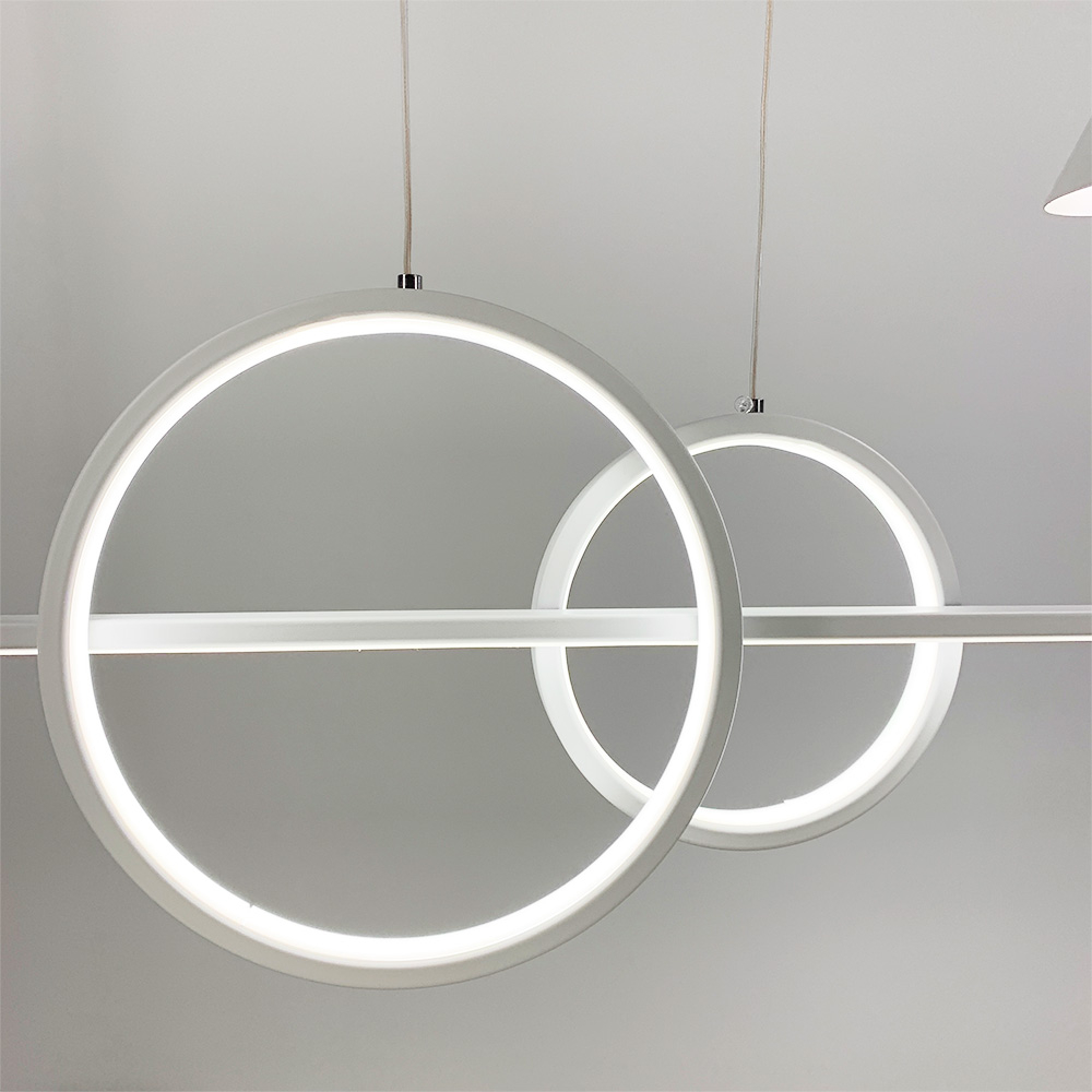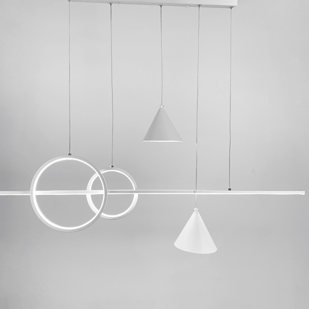 Люстра підвісна Light HouseLNF-17422 120 см біла з 2 світлодіодними колами 30Вт та з 2 конусними плафонами
