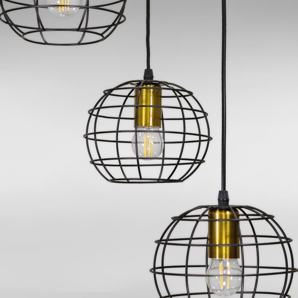 Сучасна підвісна люстра в стилі Лофт на три лампи з плафонами у вигляді овальної металевої клітки.
