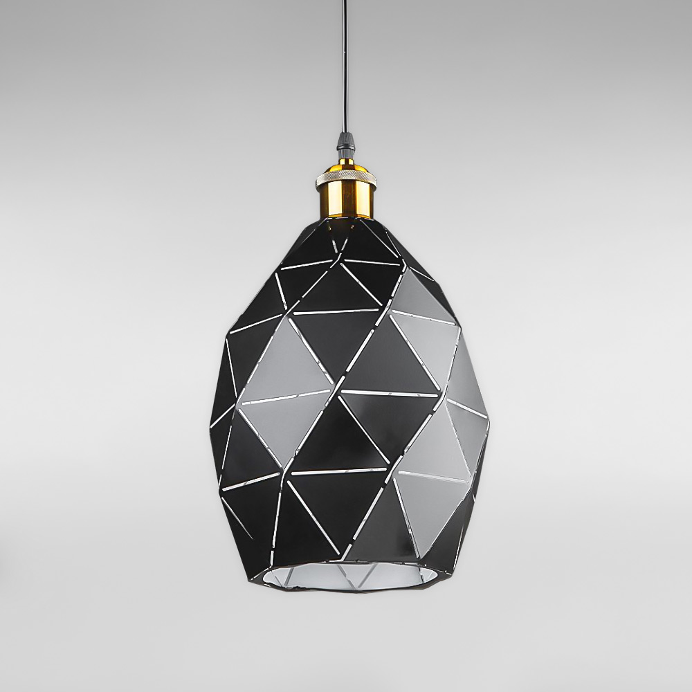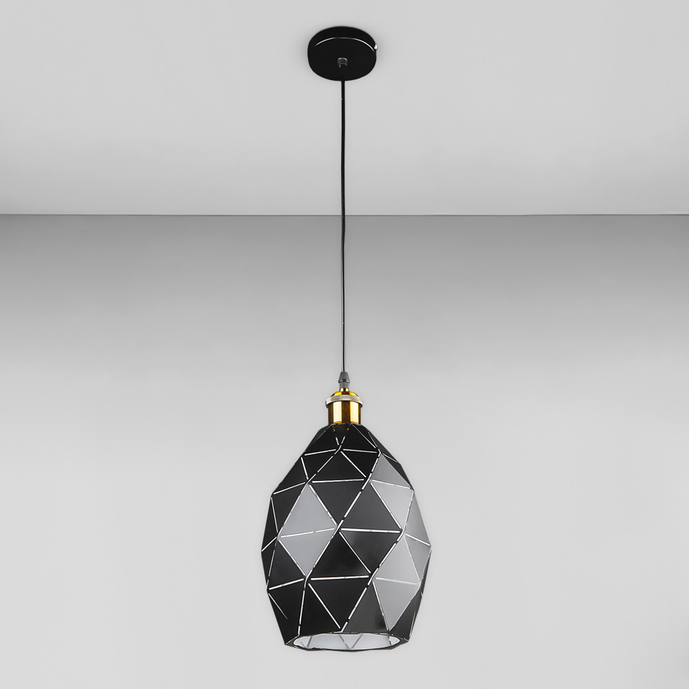 Підвісна люстра на одну лампу в сучасному стилі з декоративним металевим плафоном.