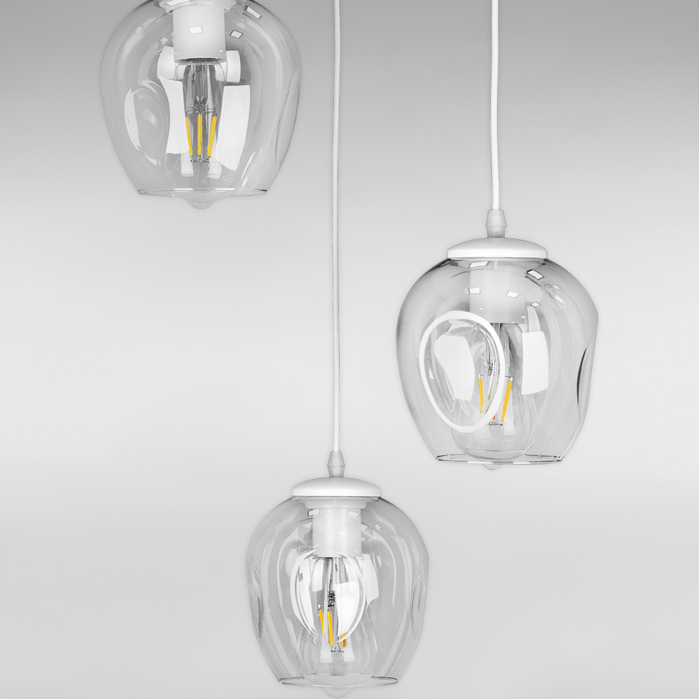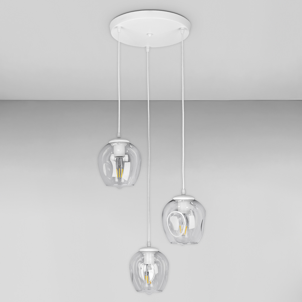 Люстра підвісна Лофт Light House LS-17191F-3 WH+CL (300) біла, плафон прозорий