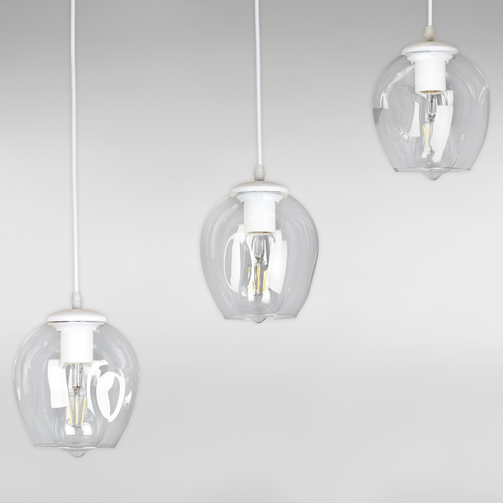 Люстра підвісна Лофт Light House LS-17191F-3 WH+CL (500) біла, плафон прозорий