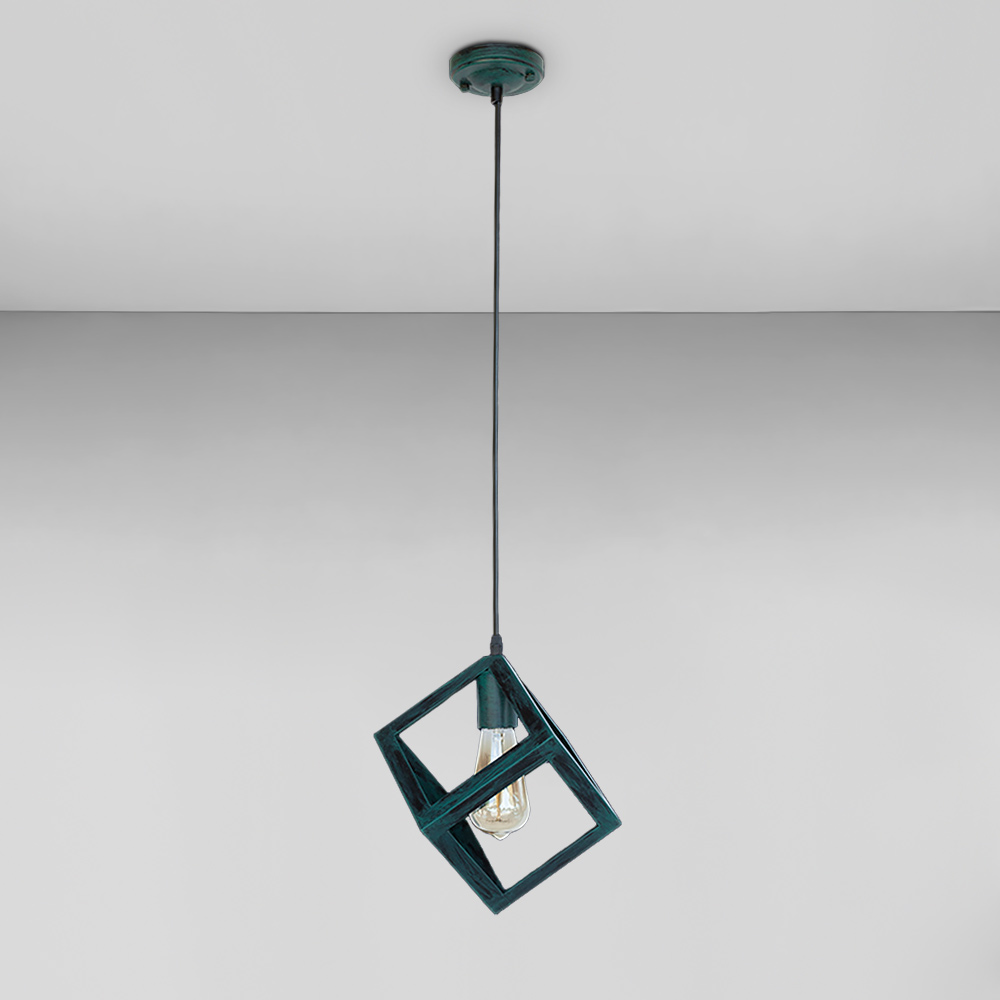 Підвісна люстра на одну лампу у сучасному стилі з металевим плафоном у вигляді ребер куба.