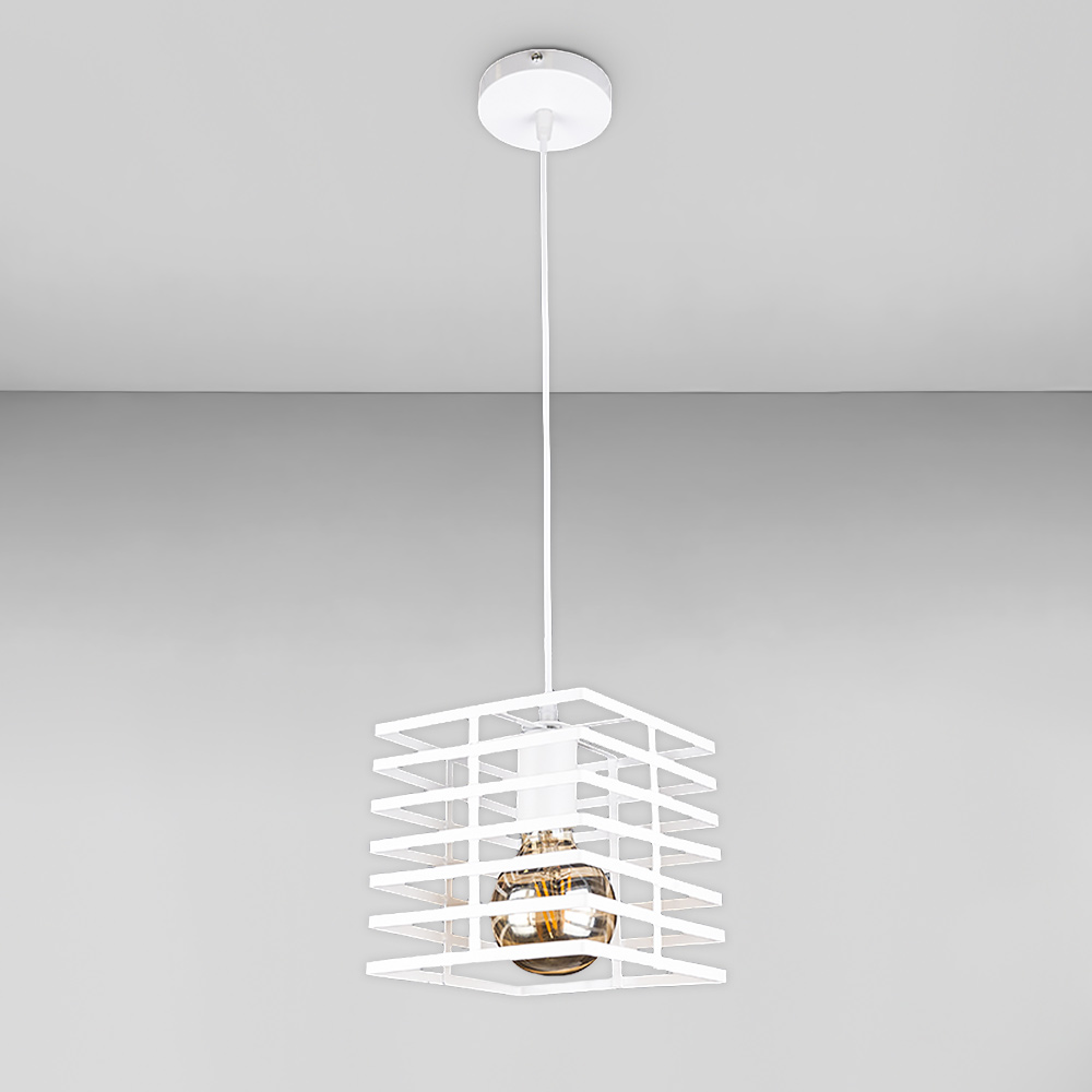 Підвісна люстра на одну лампу в сучасному стилі з плафоном у вигляді металевої клітки.