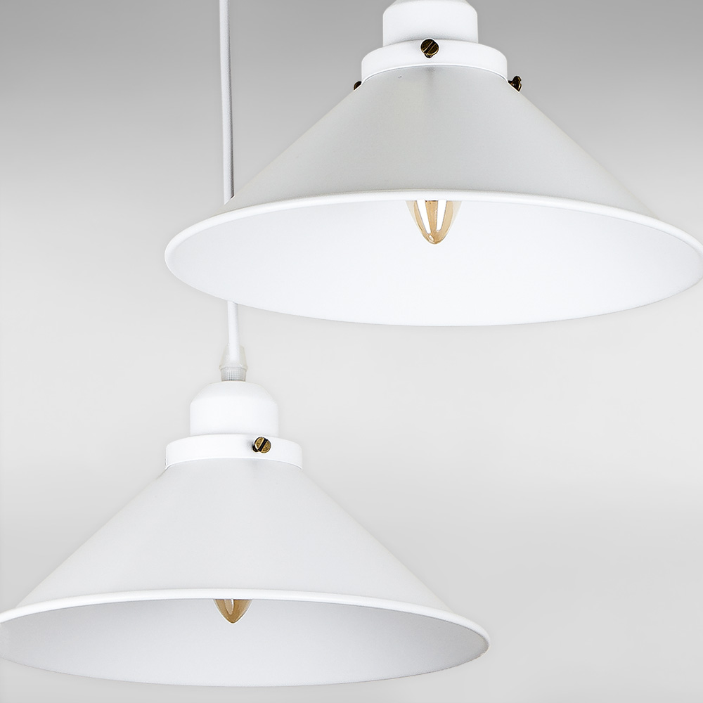 Сучасна підвісна люстра в стилі лофт на три лампи з металевими плафонами конусної форми.