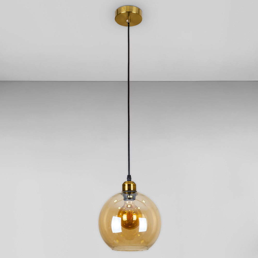 Сучасна підвісна люстра в стилі лофт на одну лампу зі скляним плафоном форми кулі.