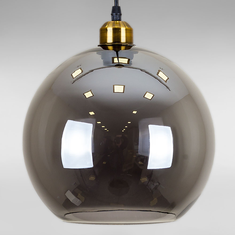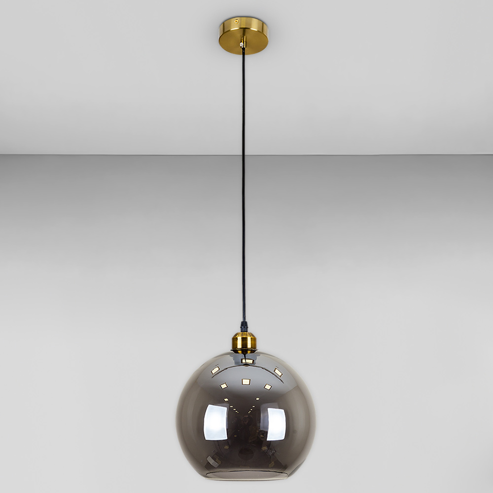 Сучасна підвісна люстра в стилі лофт на одну лампу зі скляним плафоном форми кулі.