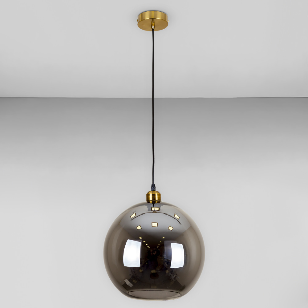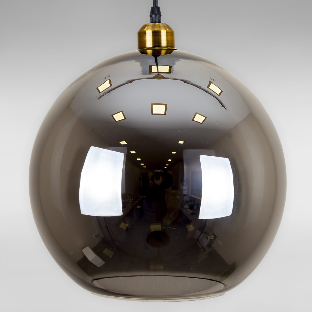 Сучасна підвісна люстра в стилі лофт на одну лампу зі скляним плафоном форми кулі.