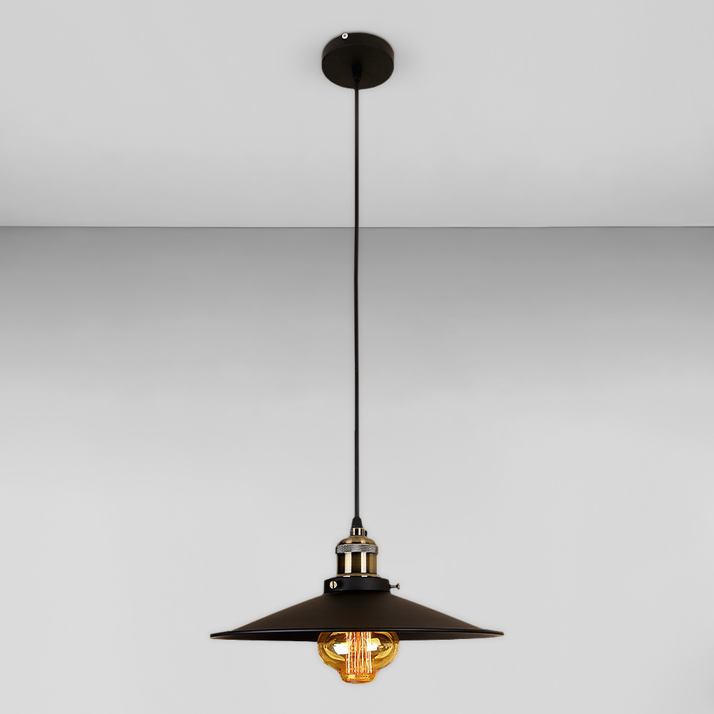 Підвісна люстра в стилі лофта на одну лампу з металевим плафоном форми тарілки.