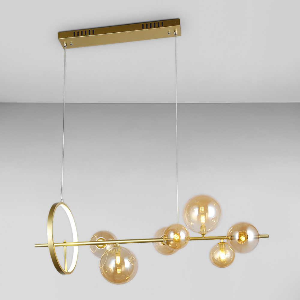Люстра підвісна молекула Light House LS-17132-7 GD+BR золото, плафон бурштиновий