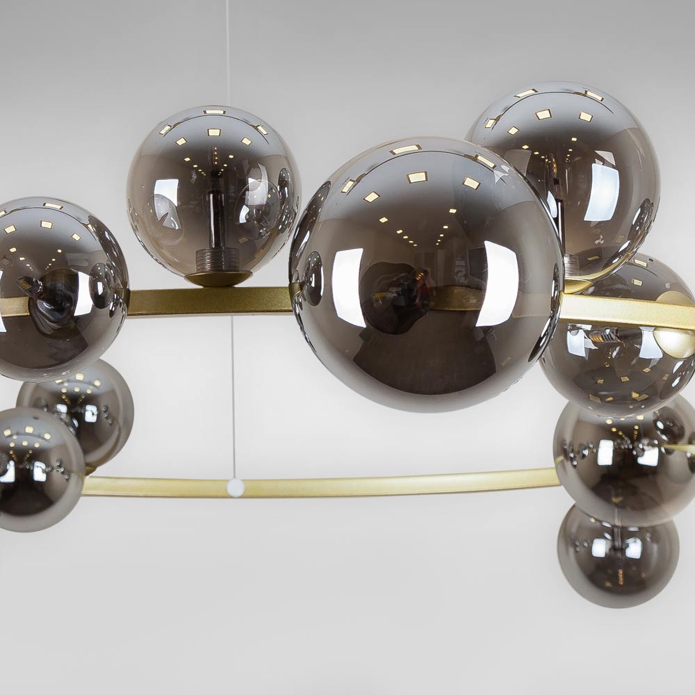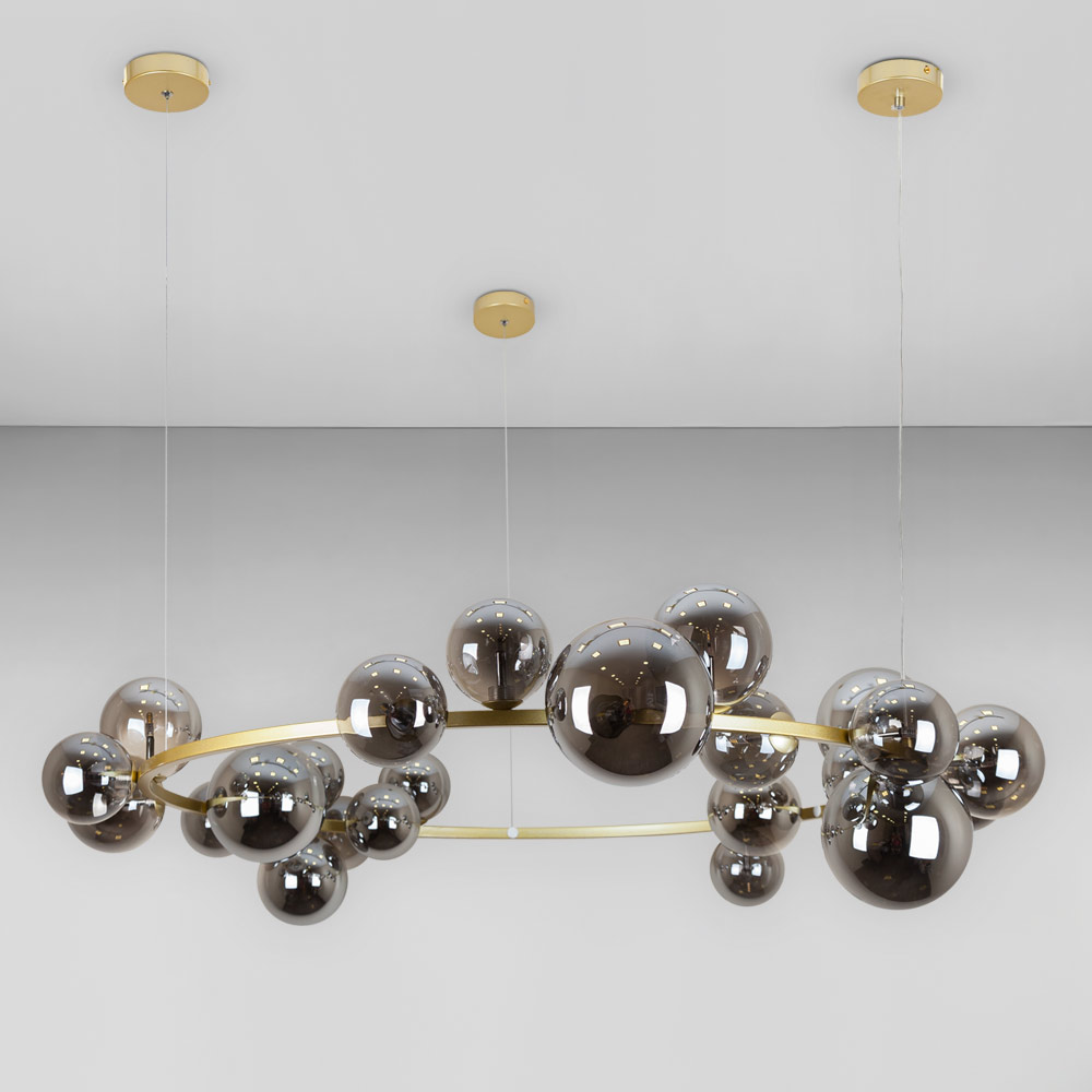 Підвісна декоративна люстра молекули на 24 лампи G4 зі скляними плафонами кулями на корпусі у вигляді кільця.
