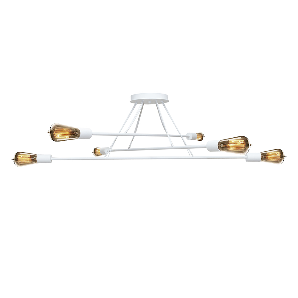 Декоративна підвісна люстра в стилі Лофт, без плафонів, на шість ламп з довгим металевим корпусом з 3 частин.