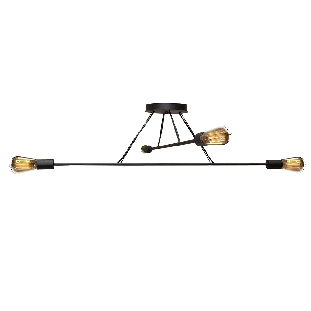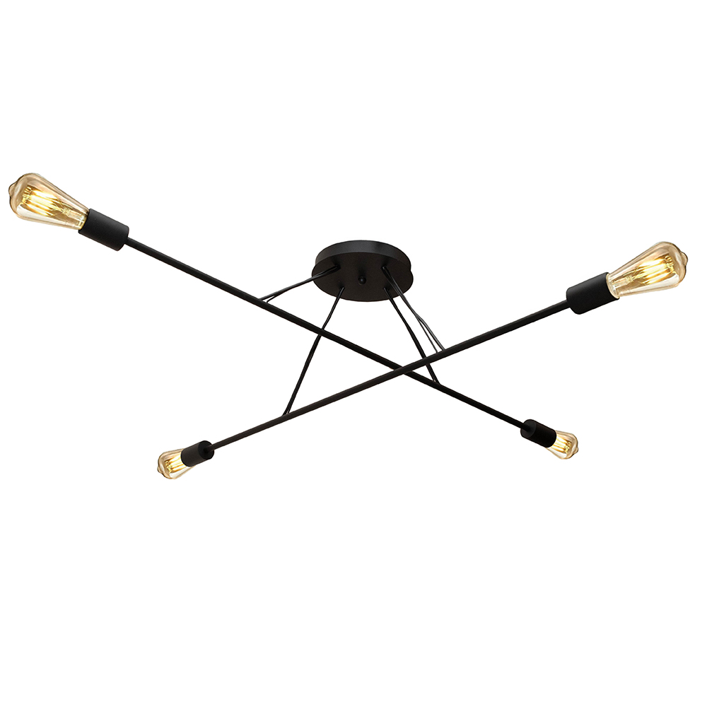 Декоративна люстра підвісна в стилі Лофт, без плафонів, на чотири лампи з довгим металевим корпусом з 2 частин.