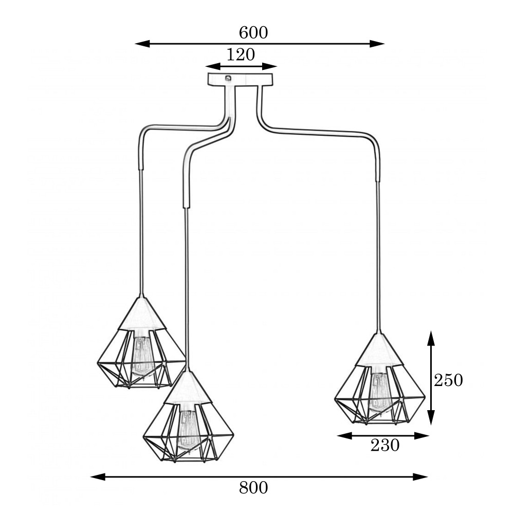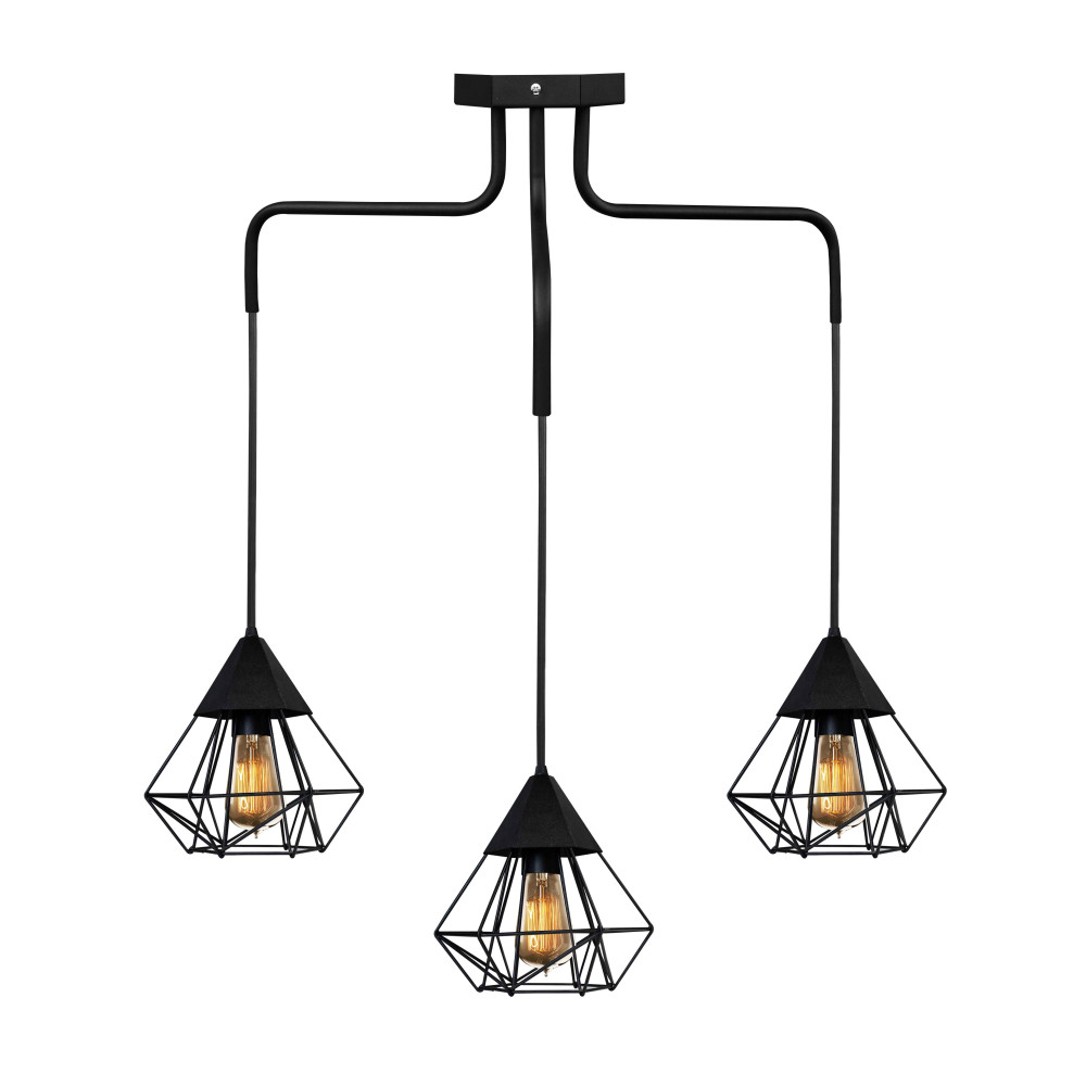 Люстра в стилі лофт на три плафони з металу. Має три плафони у вигляді клітини конусної форми під лампу Е27. Ви можете самостійно виставити потрібну довжину дроту на кожен плафон.
