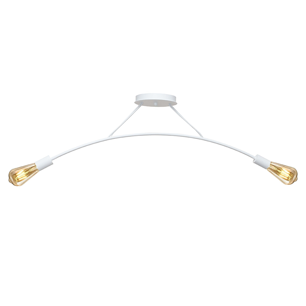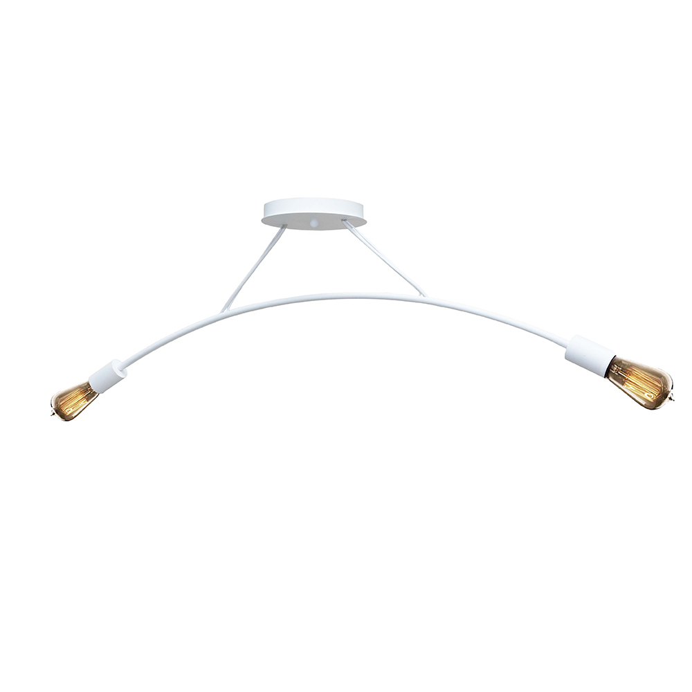 Декоративна підвісна люстра в стилі Лофт без плафонів на дві лампи з довгим металевим корпусом у вигляді дуги.