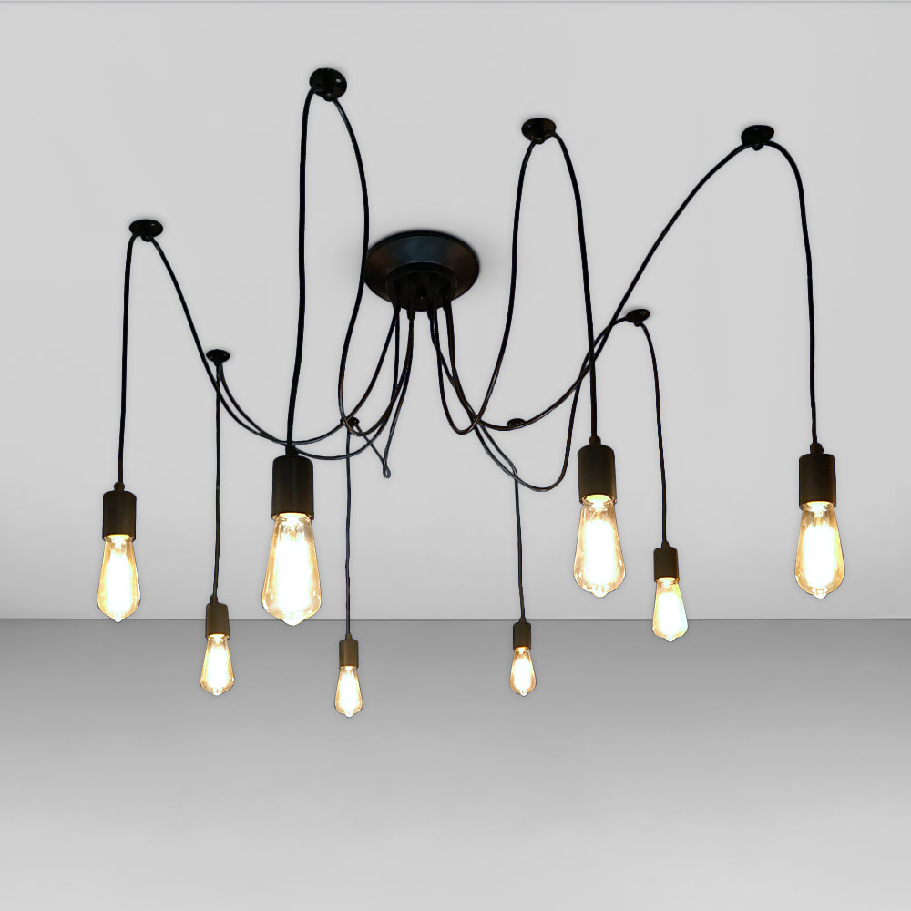 Підвісна люстра-павук у стилі лофт на вісім ламп без плафонів.