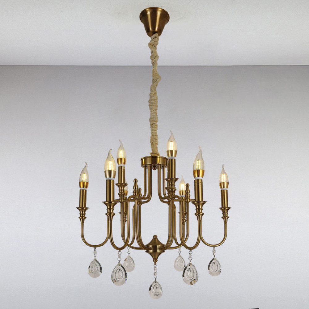 Люстра свічки на дев'ять джерел світла. Виконана в класичному стилі, має підвісні елементи з кришталю.