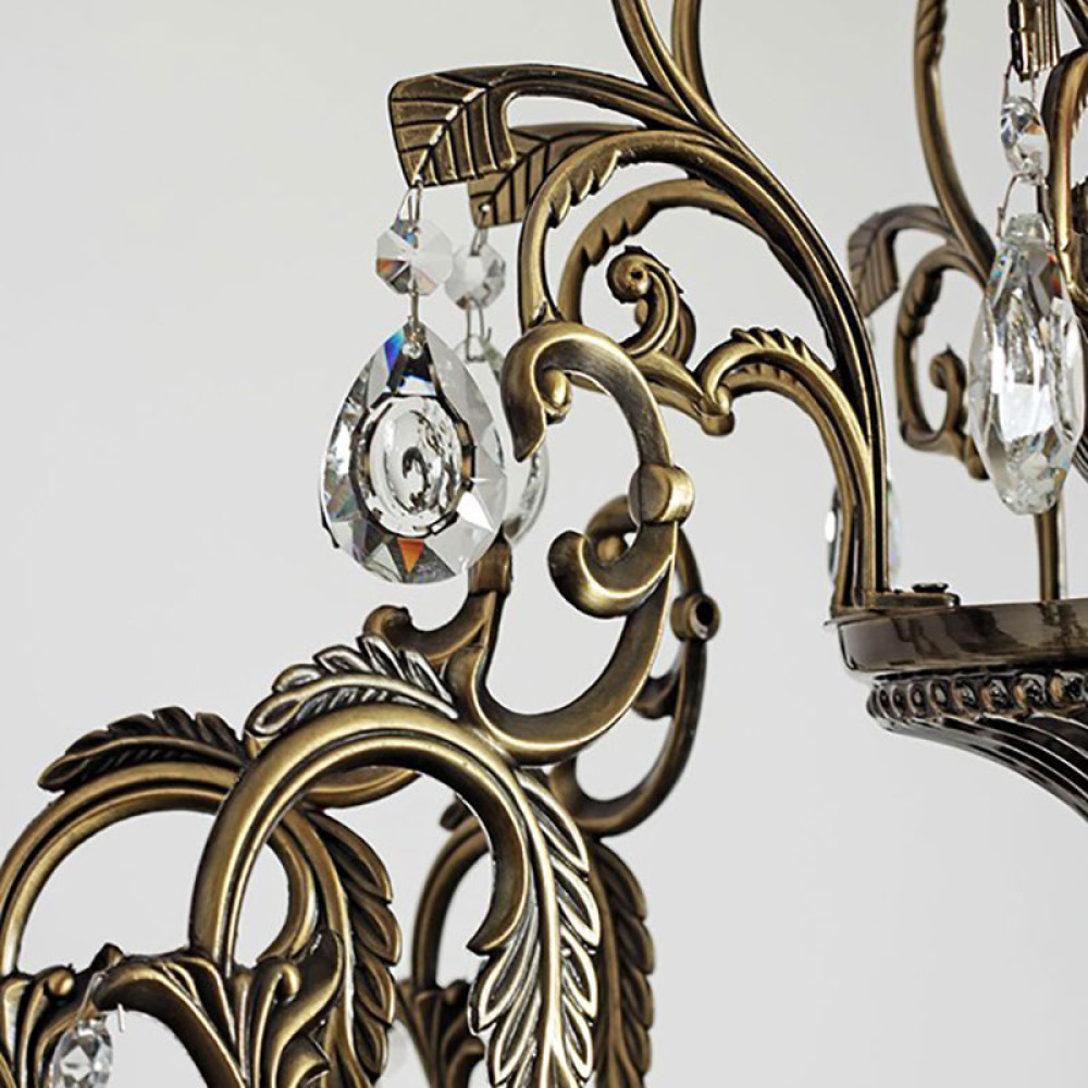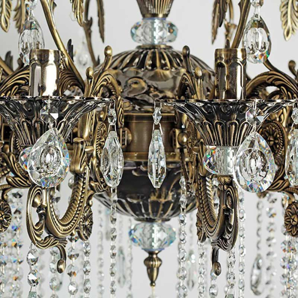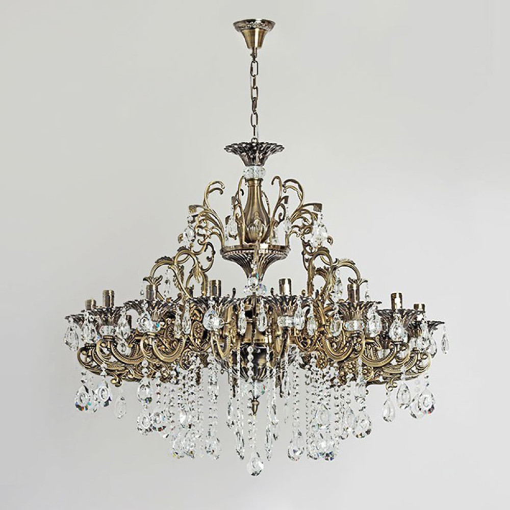 Класична підвісна люстра на дванадцять ламп у вигляді свічників із кришталевими підвісками. Вона буде королевою вашої кімнати.