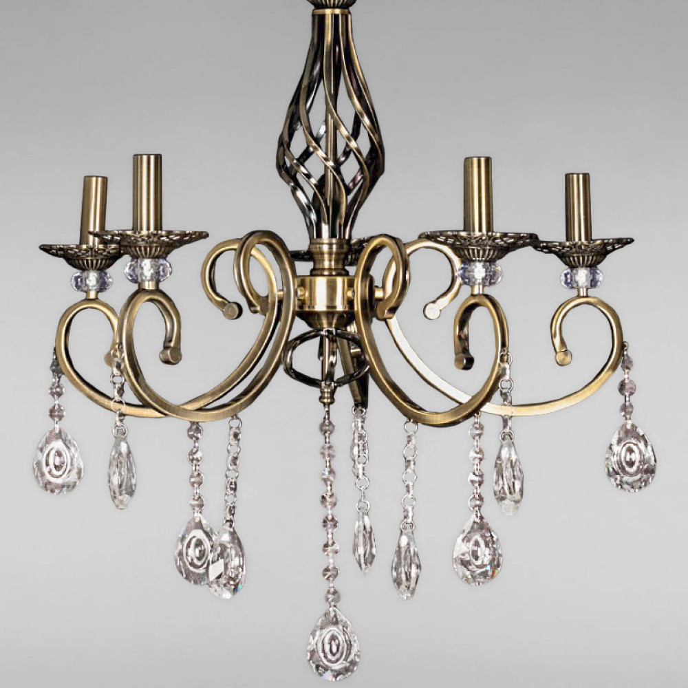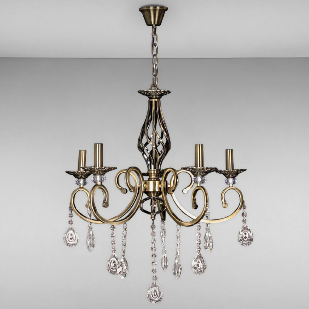 Підвісна класична люстра на п'ять ламп у вигляді свічників з кришталевими підвісками. Вона буде королевою вашої кімнати.