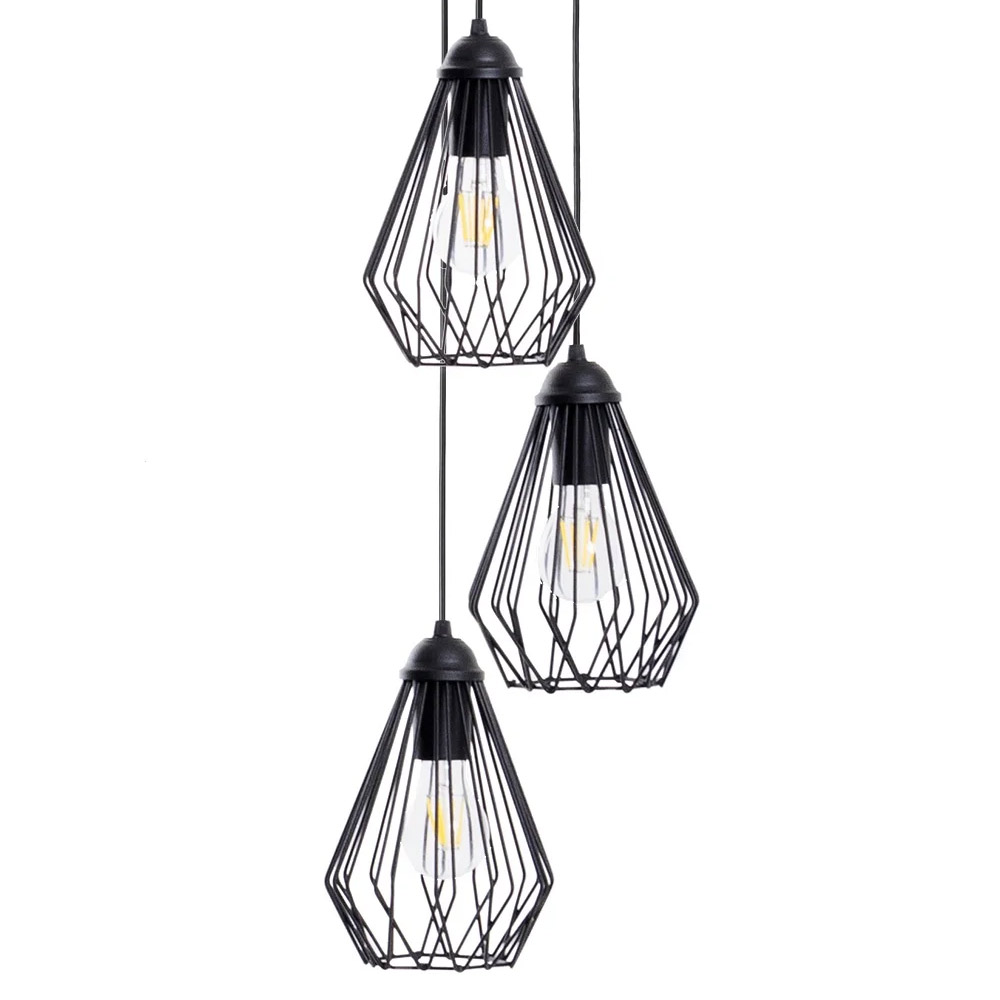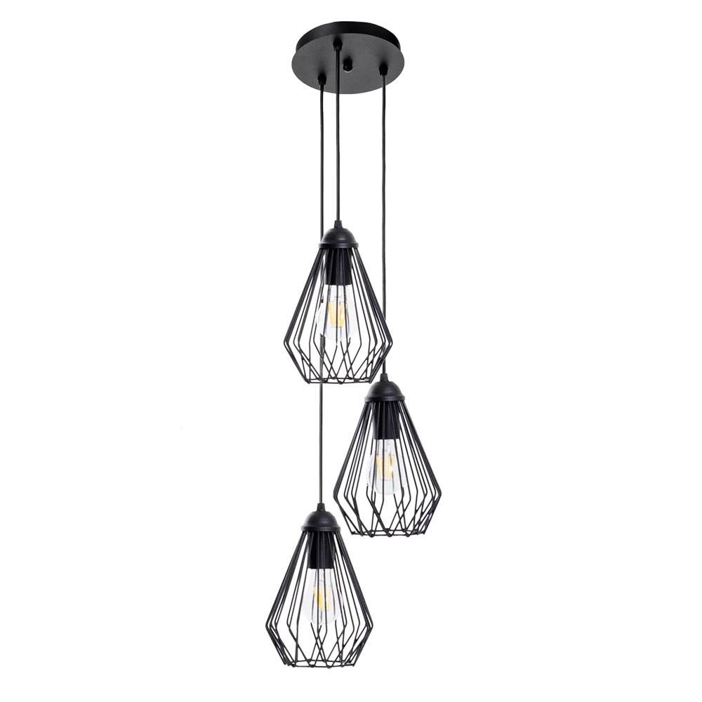 Підвісна люстра (світильник) у сучасному стилі на три лампи з металевими плафонами конусної форми у вигляді клітини.