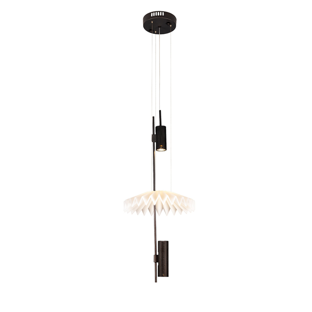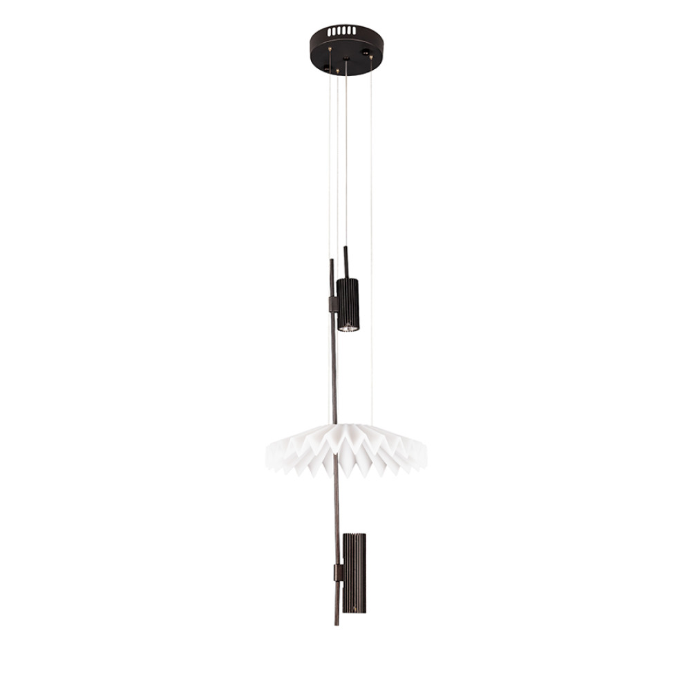 Сучасна декоративна підвісна LED люстра з нейтральною температурою кольору 4000K, без пульта управління. Незвичайний плафон люстри виконаний із білого матового пластику, має рифлену поверхню, м'яко розсіюють світло та створюють приємний затишний ефект.