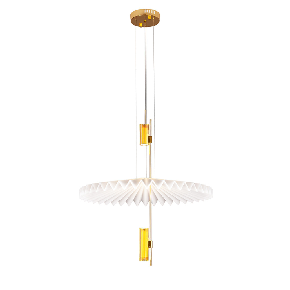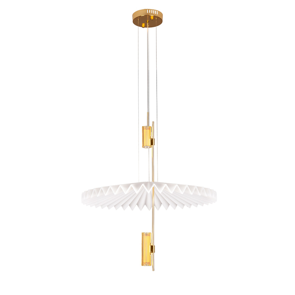 Сучасна декоративна підвісна LED люстра з нейтральною температурою кольору 4000K, без пульта управління. Незвичайний плафон люстри виконаний із білого матового пластику, має рифлену поверхню, м'яко розсіюють світло та створюють приємний затишний ефект.
