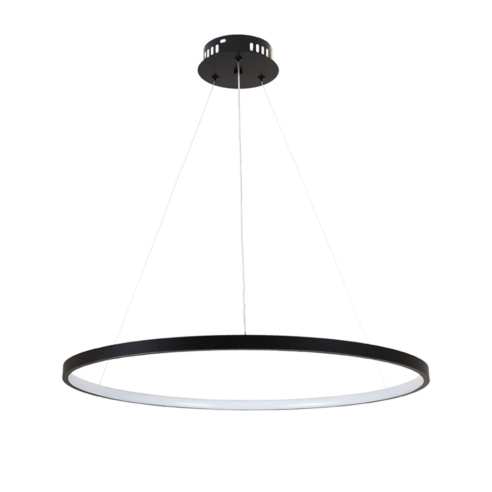 Підвісна декоративна LED люстра у сучасному стилі на одне джерело світла у вигляді світлодіодного кільця. Люстра оснащена пультом керування, регулюванням температури свічення.