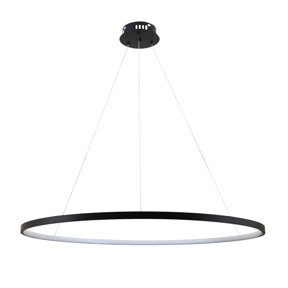 Підвісна декоративна LED люстра у сучасному стилі на одне джерело світла у вигляді світлодіодного кільця. Люстра оснащена пультом керування, регулюванням температури свічення.