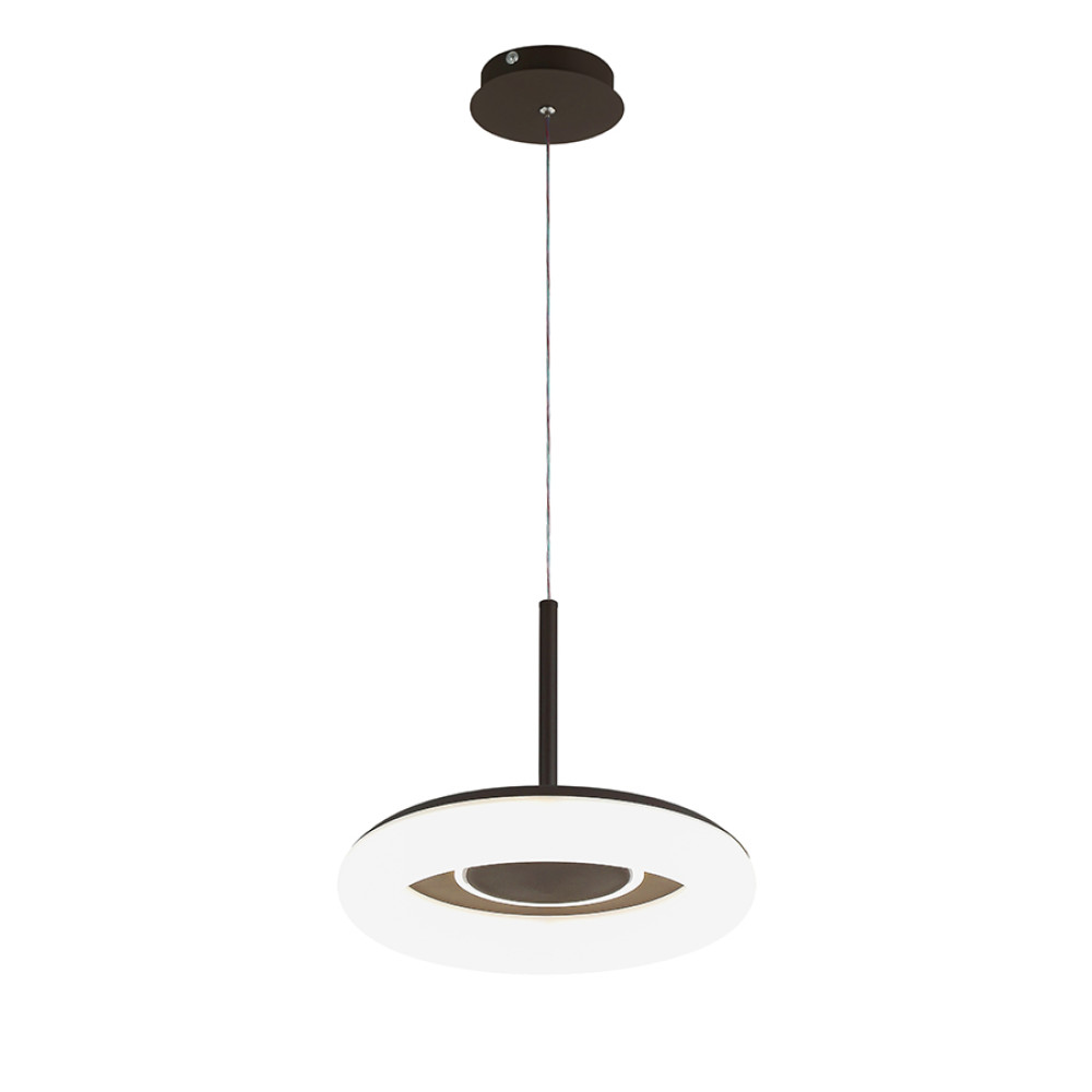 Сучасна декоративна підвісна LED люстра на джерело світла з регулюванням колірної температури, без пульта управління. Незвичайний дизайн люстри представлений у вигляді світлодіодного кільця на плоскому корпусі.