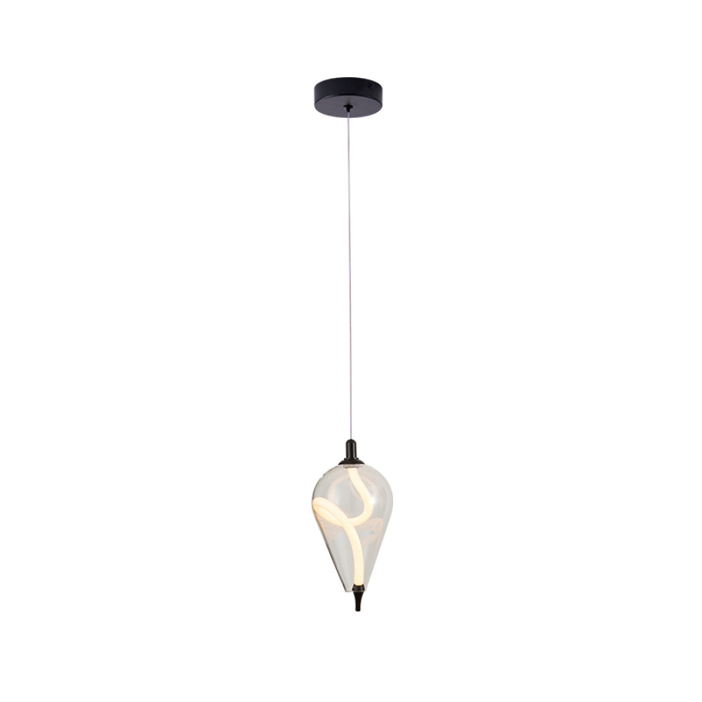 Сучасна декоративна підвісна LED люстра на одне джерело світла з регульованою колірною температурою. Незвичайний дизайн люстри представлений у вигляді вигнутого світлодіодного стрижня зі скляним плафоном конічної форми.