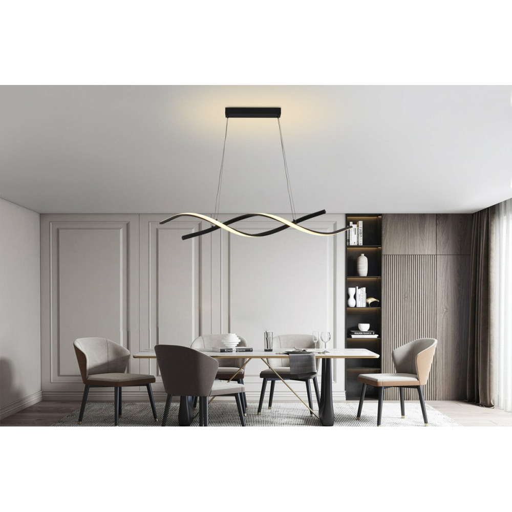 Підвісна декоративна люстра LED у сучасному стилі на два джерела світла хвилястої форми. Люстра оснащена пультом керування, регулюванням температури та яскравості свічення.