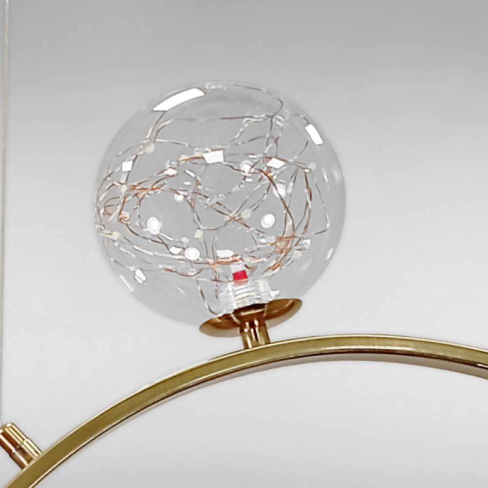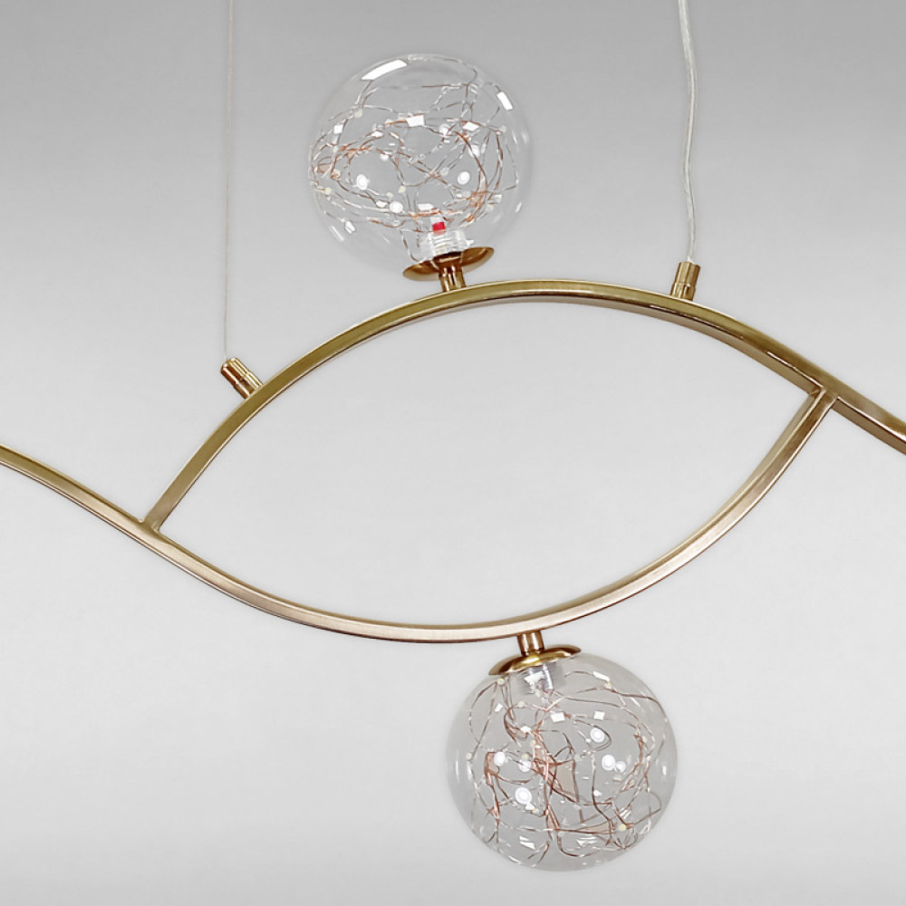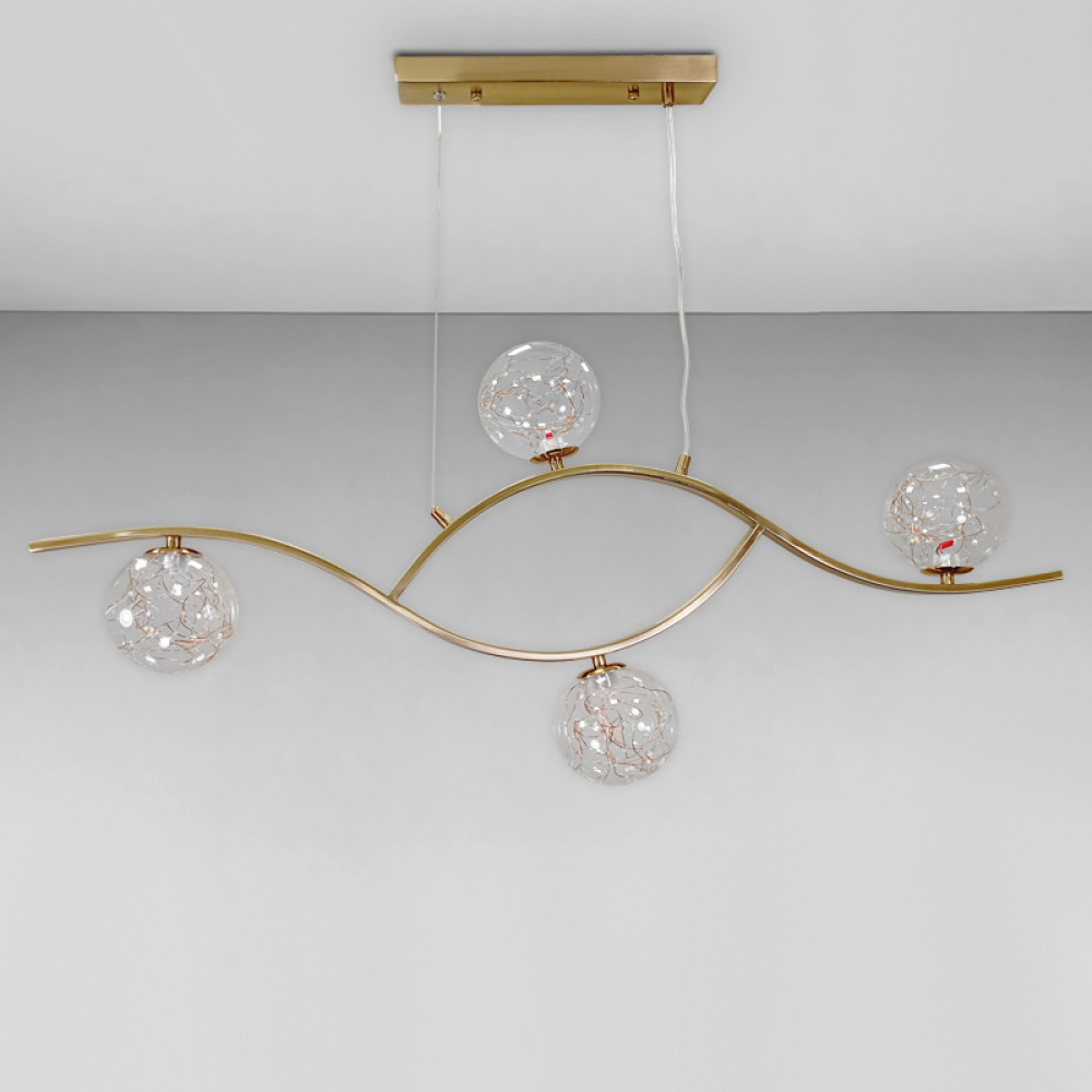 Підвісна LED люстра на чотири плафони у формі кулі, в сучасному стилі.