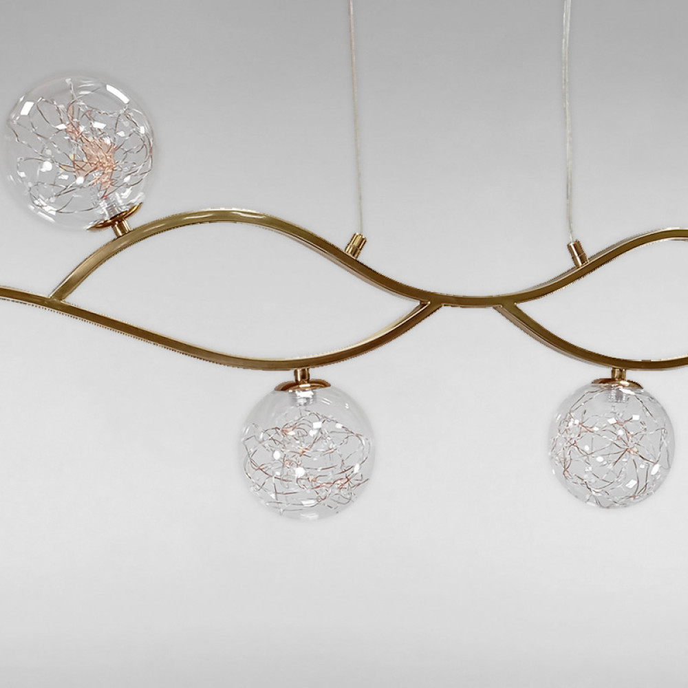 Підвісна LED люстра на шість плафонів у формі кулі, в сучасному стилі.