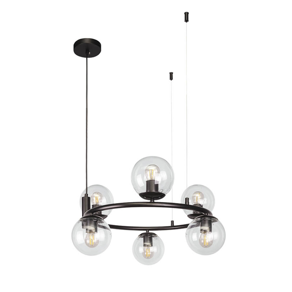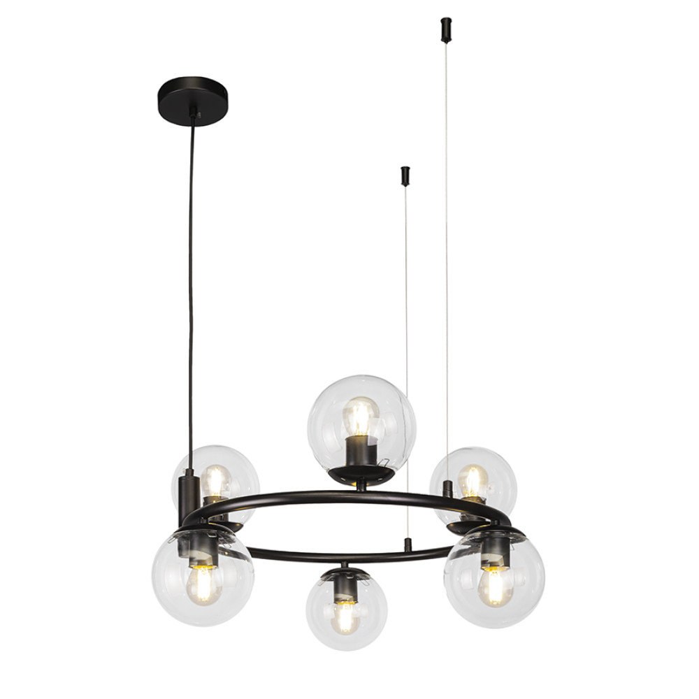 Люстра підвісна у вигляді кільця Levistella 7521011-6 BK+CL чорна, плафон прозорий