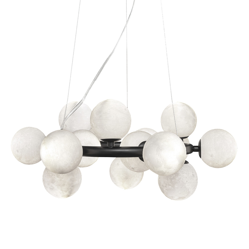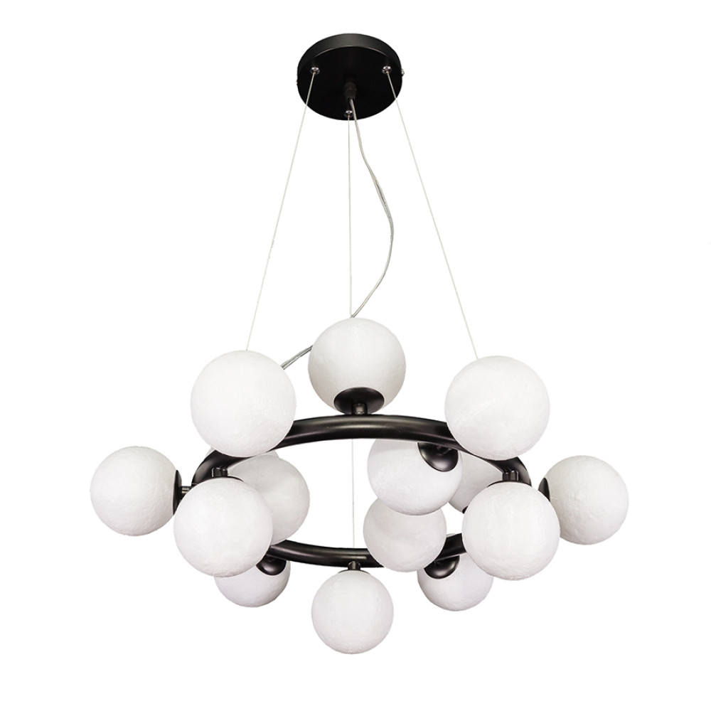 Люстра підвісна у вигляді кільця Levistella 761J2029-15-S BK+WH чорна з білими плафонами кульками