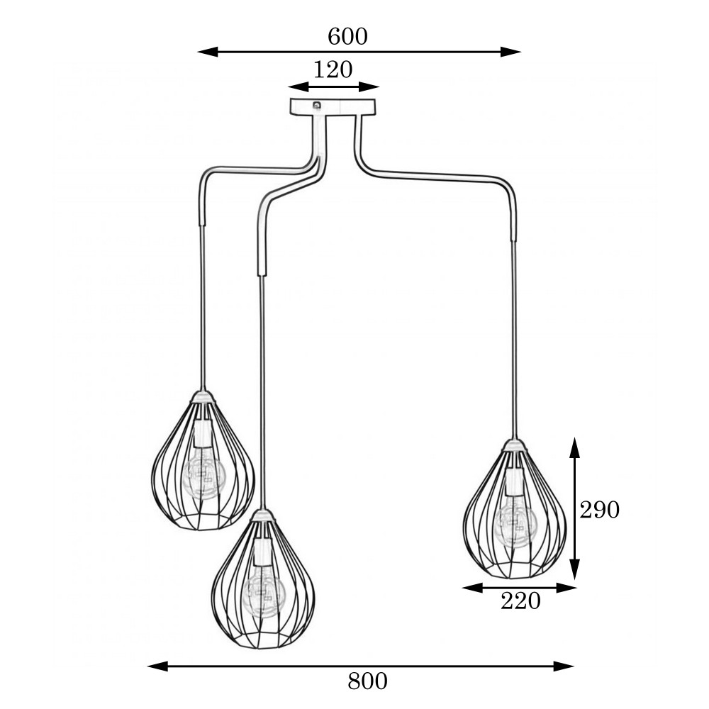 Тип цоколя: E-27 (Стандарт)Кількість джерел світла: 3 (лампочки до комплекту не входять)