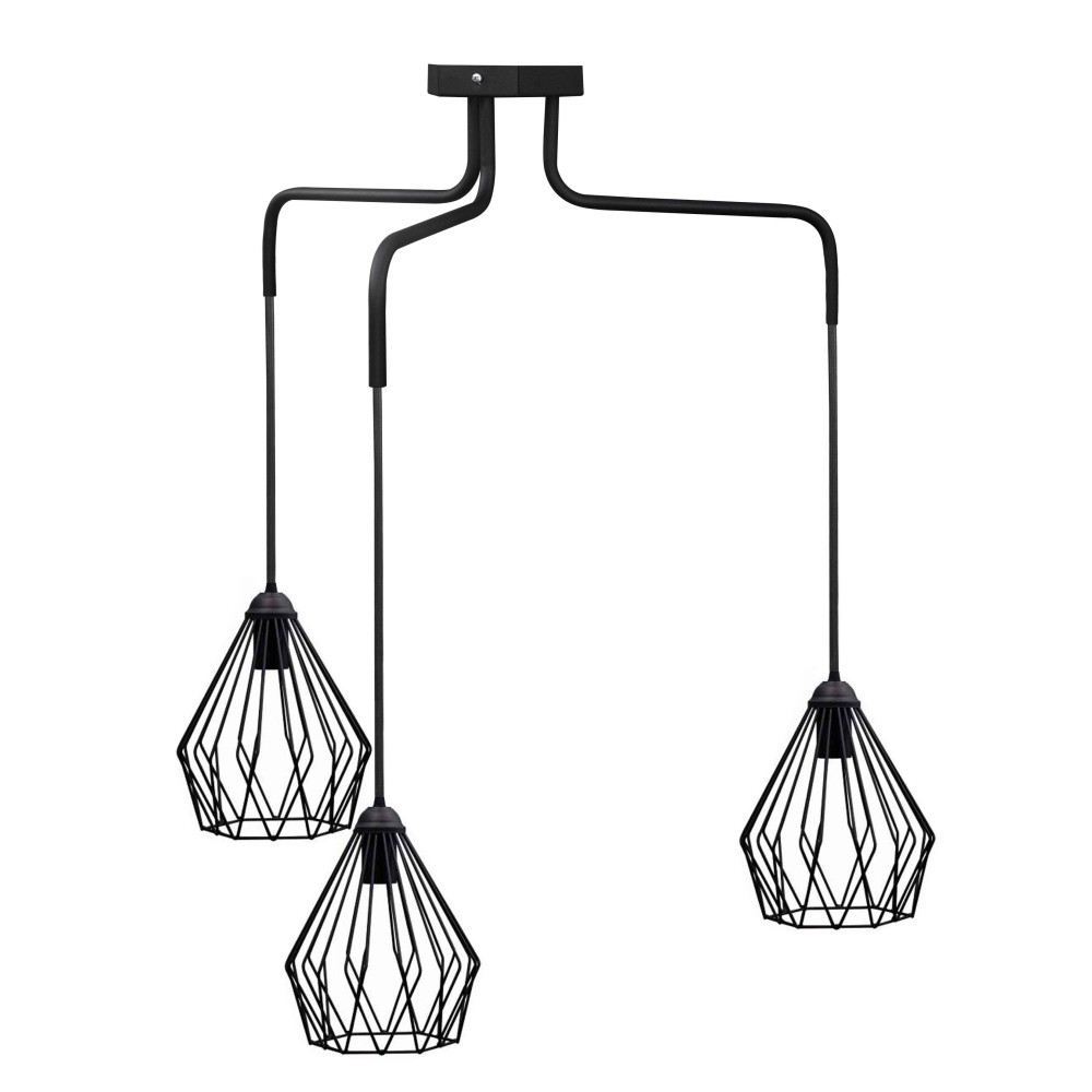Люстра в стилі лофт на три плафони з металу. Має три плафони у вигляді сіток під лампу Е27. Ви можете самостійно виставити потрібну довжину дроту на кожен плафон.