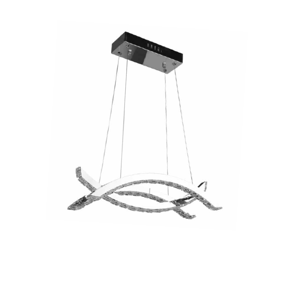 Декоративная современная светодиодная подвесная люстра с хрустальными элементами, имеет нейтральный цвет освещения.
