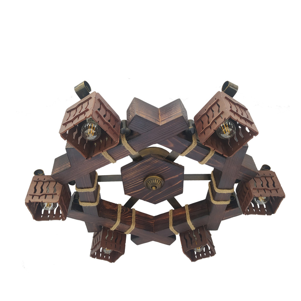 Люстра стельова дерев'яна Light House LPR-20106/6С колір коричневий