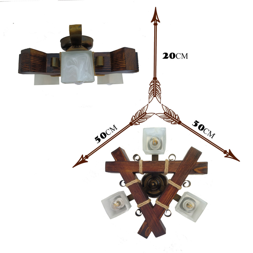 Люстра стельова дерев'яна Light House LPR-20116/3C колір коричневий + бронза, плафон білий