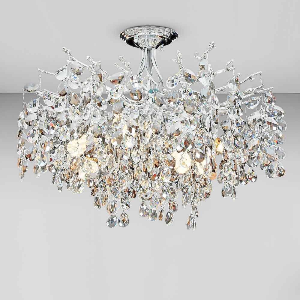 Класична стельова люстра на вісім ламп з кришталевими підвісками.