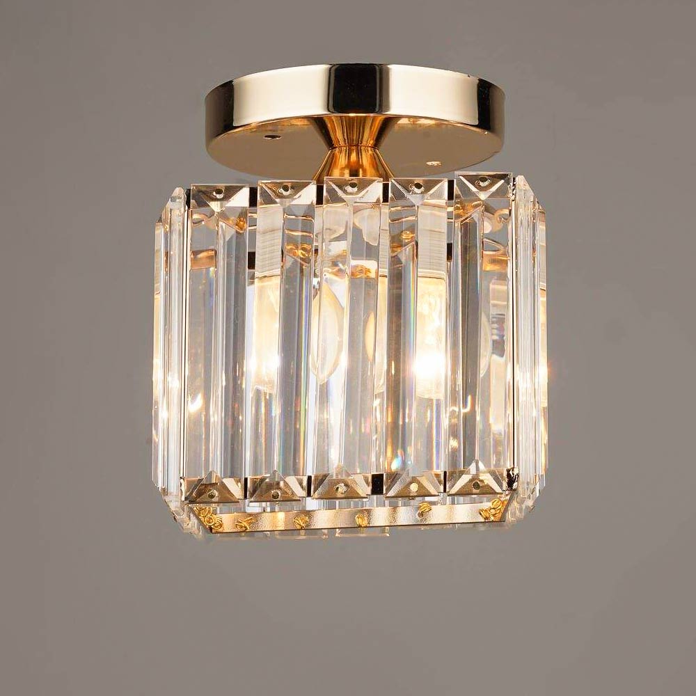 Стельова люстра на одну лампу з кришталевими підвісками в сучасному стилі.
