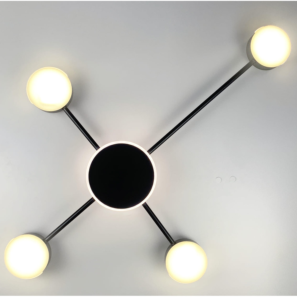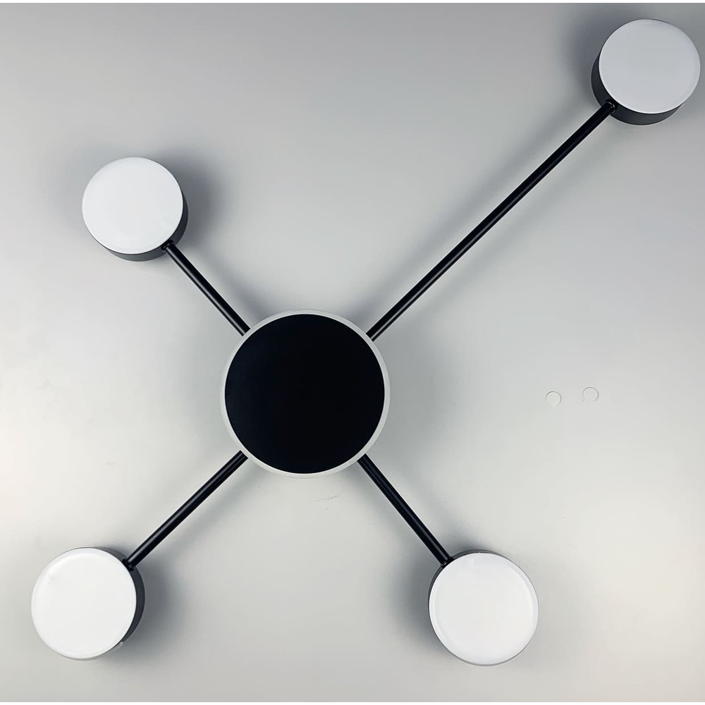 Стельова дизайнерська світлодіодна люстра в чорному корпусі на чотири круглі плоскі плафони, без пульта управління.