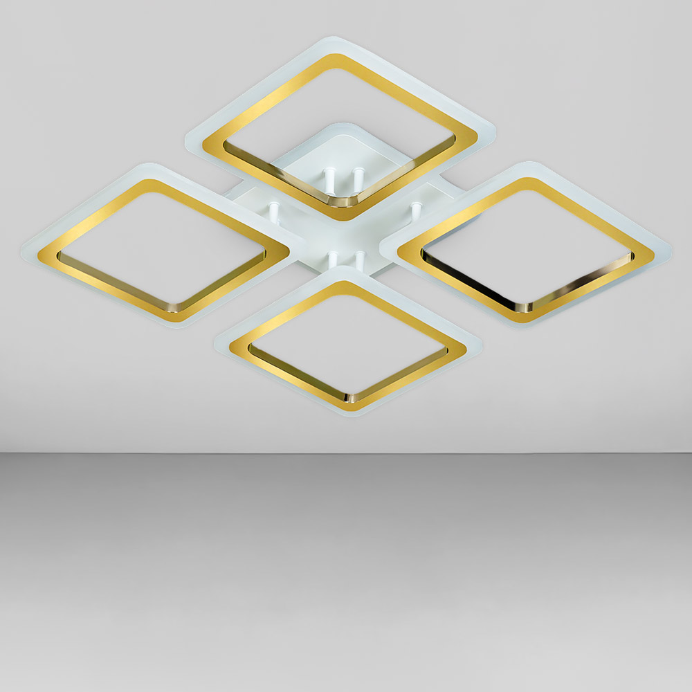Люстра стельова світлодіодна LED Light House SC-18692/4B WH+FG/RGB 104W+10W 2.4G 496*496*80, колір білий + золото