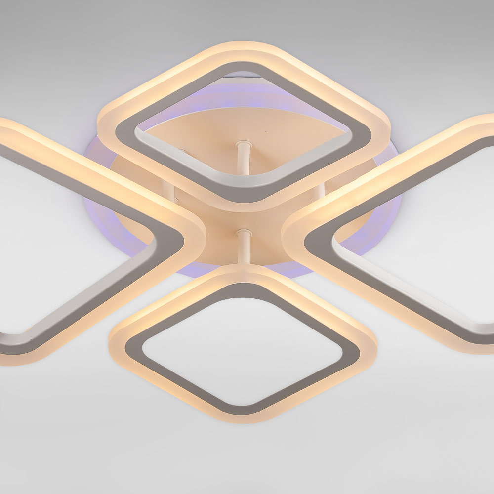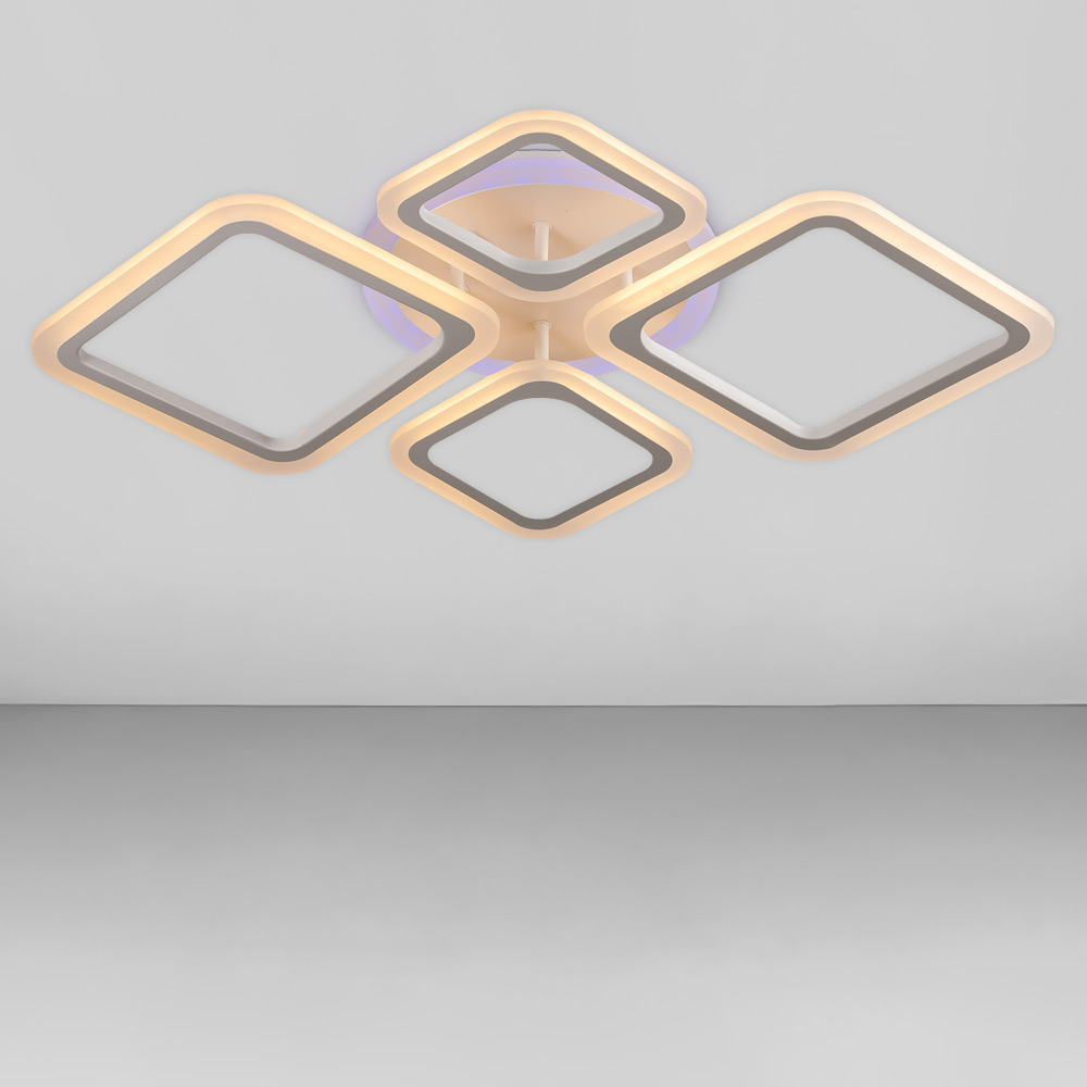 Стельова світлодіодна люстра в сучасному стилі, на чотири джерела світла у вигляді LED квадратів з димером і RGB з підсвічуванням корпусу.